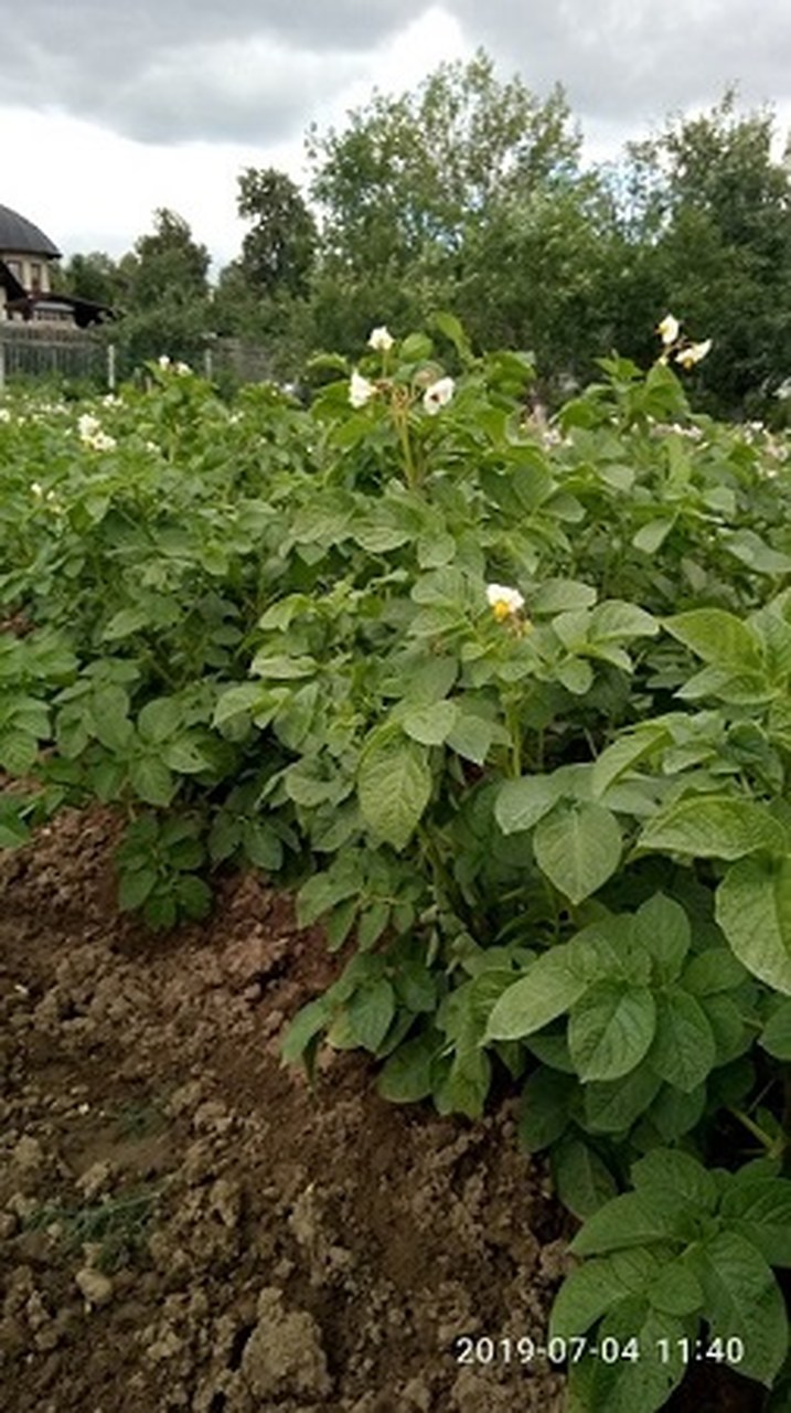 Andrey писал(а): 04.07.2019, 15:29 Уважаемые картофелеводы.Подскажите что это за сорт.Сорт очень урожайный позднего срока созревания.Ботва высокая,практически не болеет.В середине соцветия имеет характерный золотой отблеск,на фото видно.Сорт лет 5 назад привезли из Белоруссии.Картофель на фото вид сверху подсаживался,после основной посадки.Основная посадка на первых