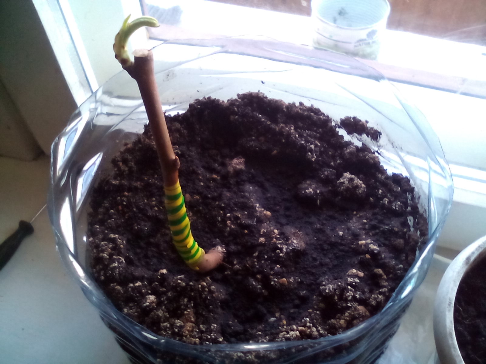 Скорее всего, вся конструкция через две недели накроется "медным тазом", корней ещё нет.