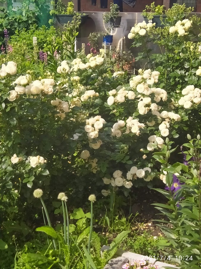 Вообще осознала, что светлых роз (молочных, белых и т.д.) должно быть в каждом цветнике достаточное количество. Все остальные цвета ни их фоне смотрятся гораздо выигрышней.
