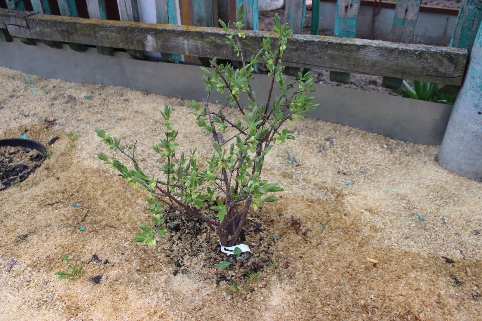 Фото при посадке, сейчас саженцы зеленые, даже цвели, но ягоды не завязались. В общем оставлю значит так. Корневая система поднимется к поверхности по мере роста.
