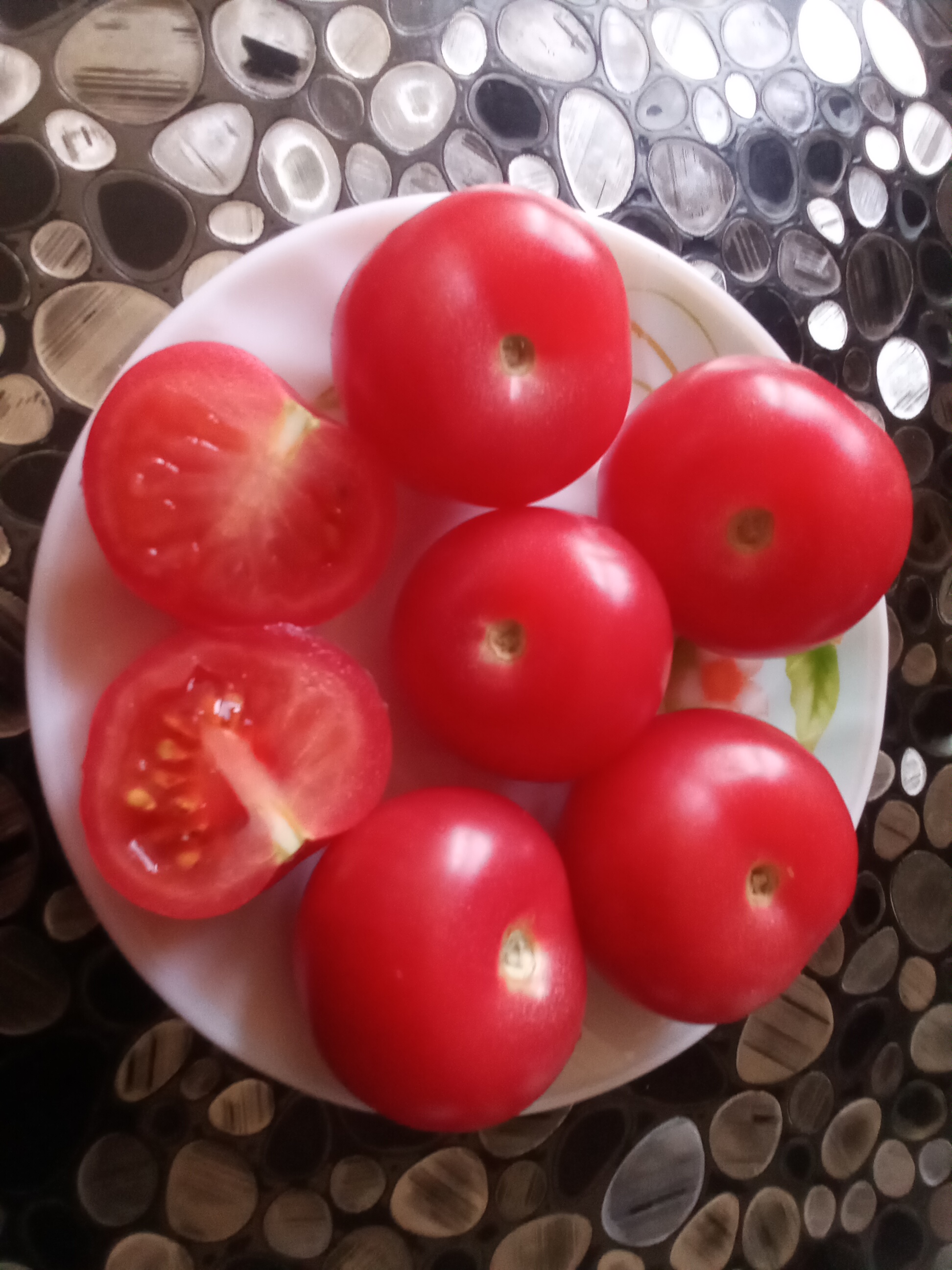 Я коктейльные томаты не очень, потому что не знаю, куда приспособить. Вот черри, к примеру, на 1 укус, а этот или откусываешь и сок брызжет, а целым во рту не помещается😃