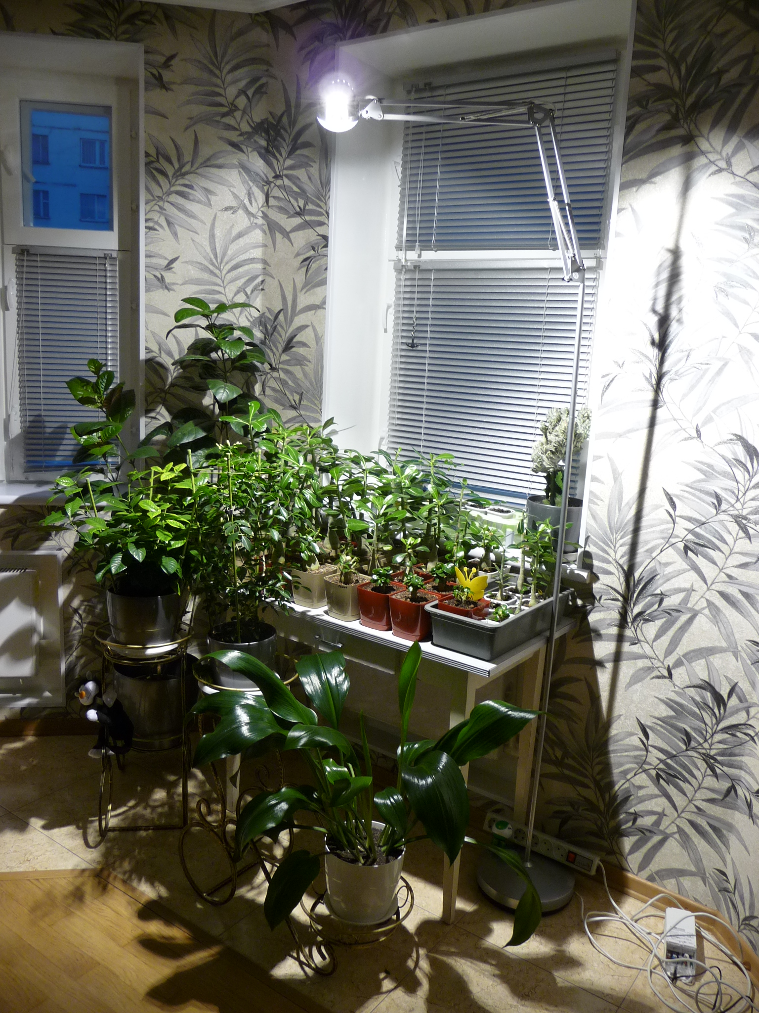 Ольга,есть положительные отзывы об светильнике GL-50W-660 Лампа UFO для освещения растений, 50Вт http://www.svetodiod.su/product/gl-50w- ... enij-50vt/ , то ,что я хочу заказать, вроде, не хуже.Сейчас все растения подсвечиваю мощными люмками. Листопадят,конечно,но и цветут понемногу. У меня там температура не очень высокая и влажность повышенная (это подвал),поэтому пока там растениям нормально. Завтра фото попробую сделать. Но лампы специальные обязательно нужны!