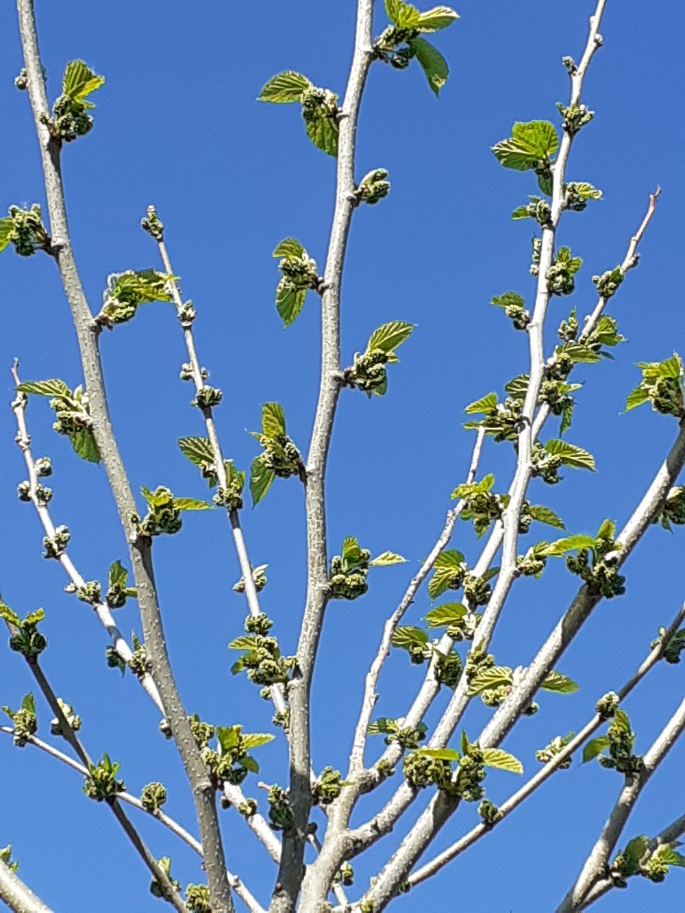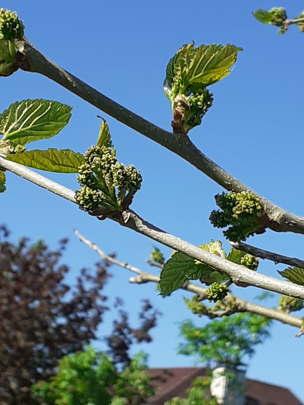 Тепло шпарит, шелковицы готовы зацвести. Эта трехлетка с востока Оренбуржья, пару лет назад отдавал знакомому - зацветает впервые и оказалось мужских и женских соцветий примерно пополам.