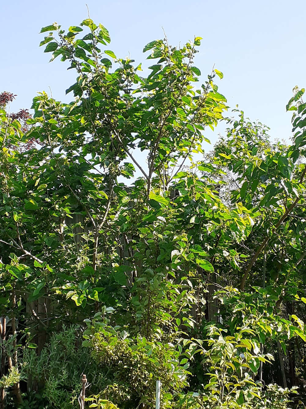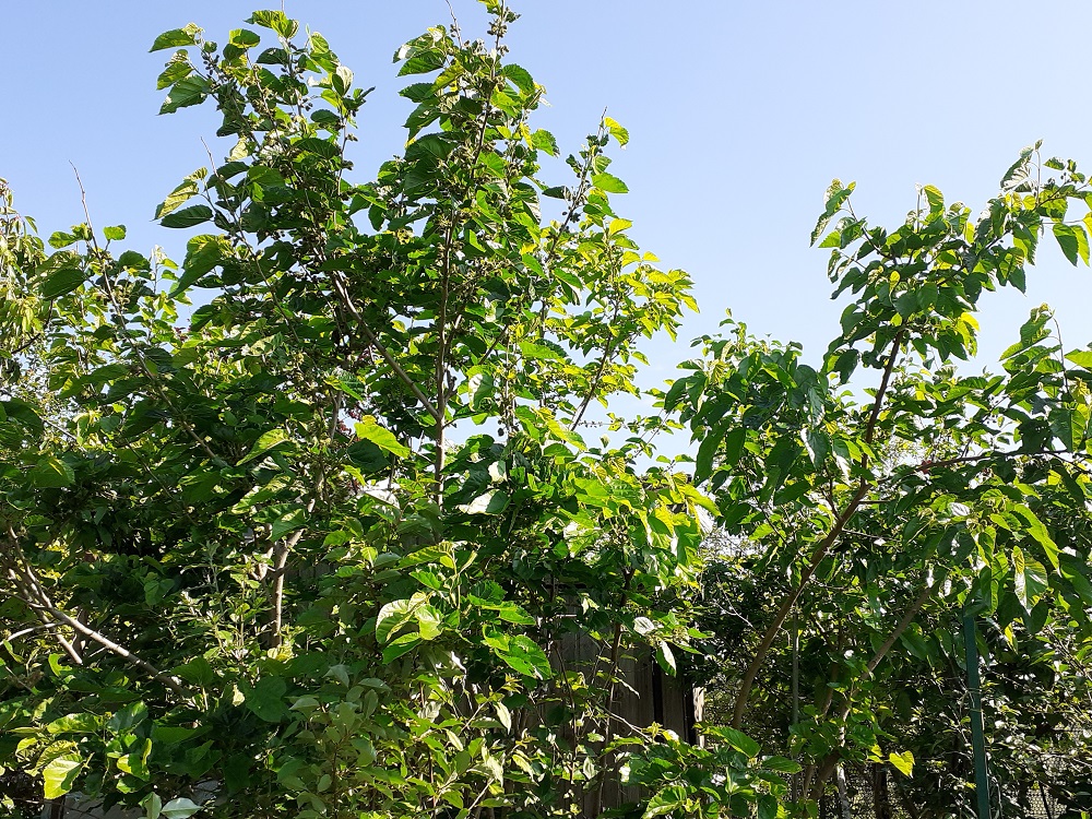 У меня в эту зиму верхушки подмерзли у шелковицы и у рядом стоящего грецкого ореха и у ирги (видно что-то полосой прошло).