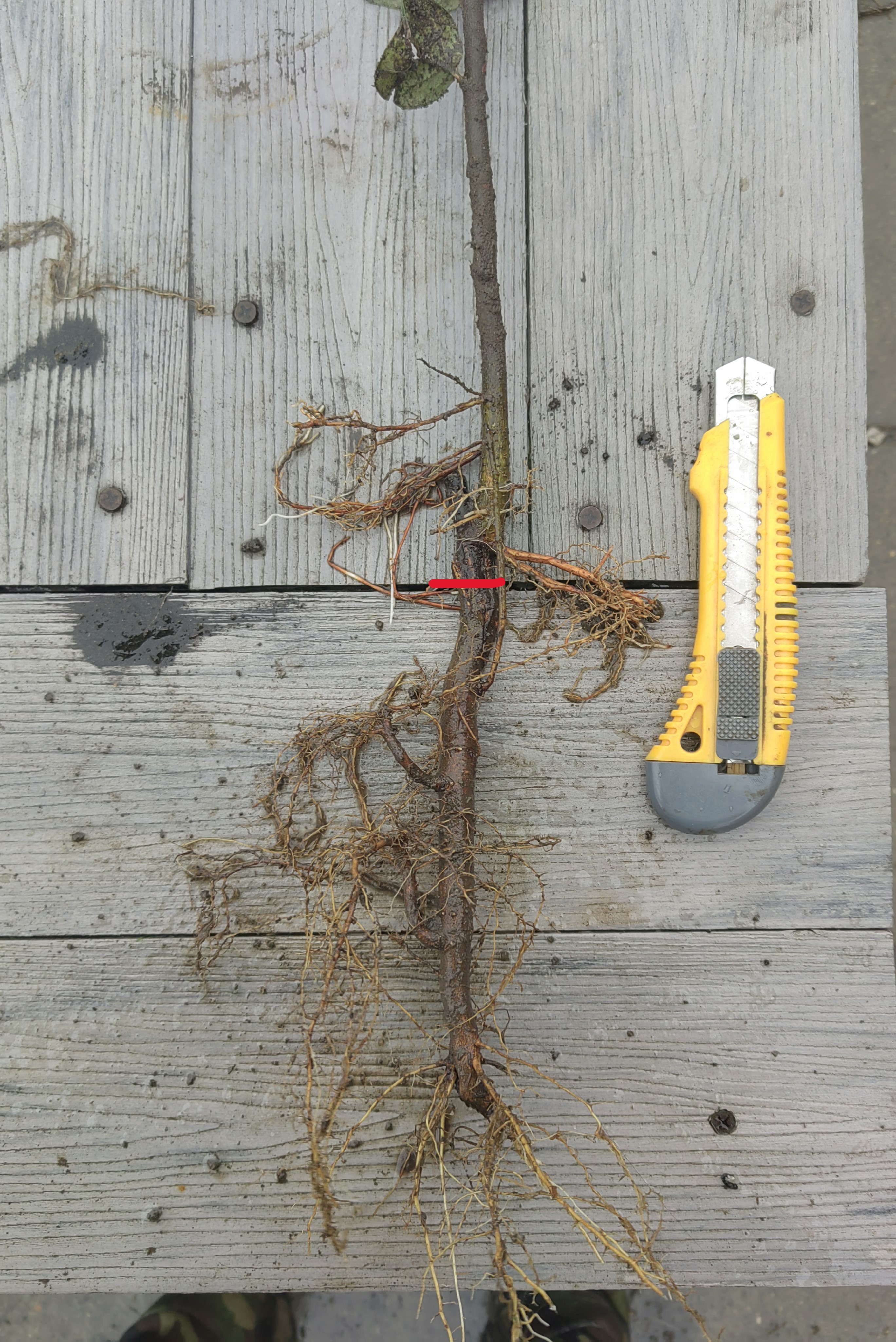 Красным показаны места прививок, зеленым уровень грунта до сегодняшнего дня.Даже на фото видно , что корневые растут по разному , не конкурируя между собой.