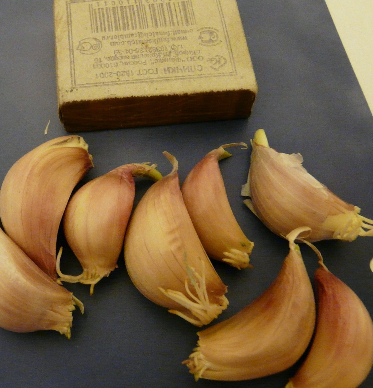 Вот мой чеснок готов к высадке. Для сравнения положила спичечный коробок.