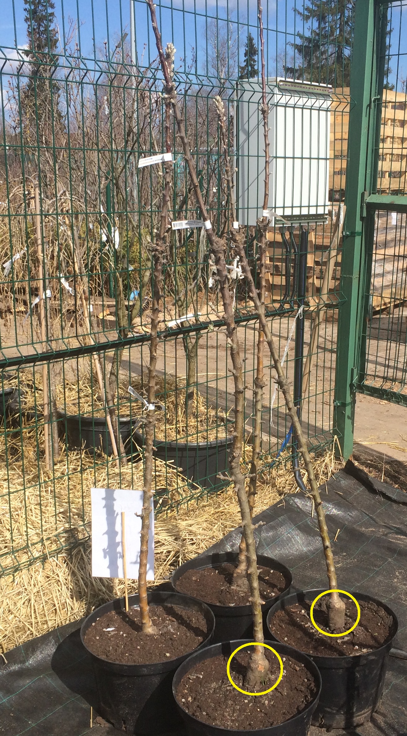 Прививка черенком, место прививки у самой земли у меня. Прививал выше, потом сажал с заглубление ДО прививки. А высота 25-40 см всего у саженцев