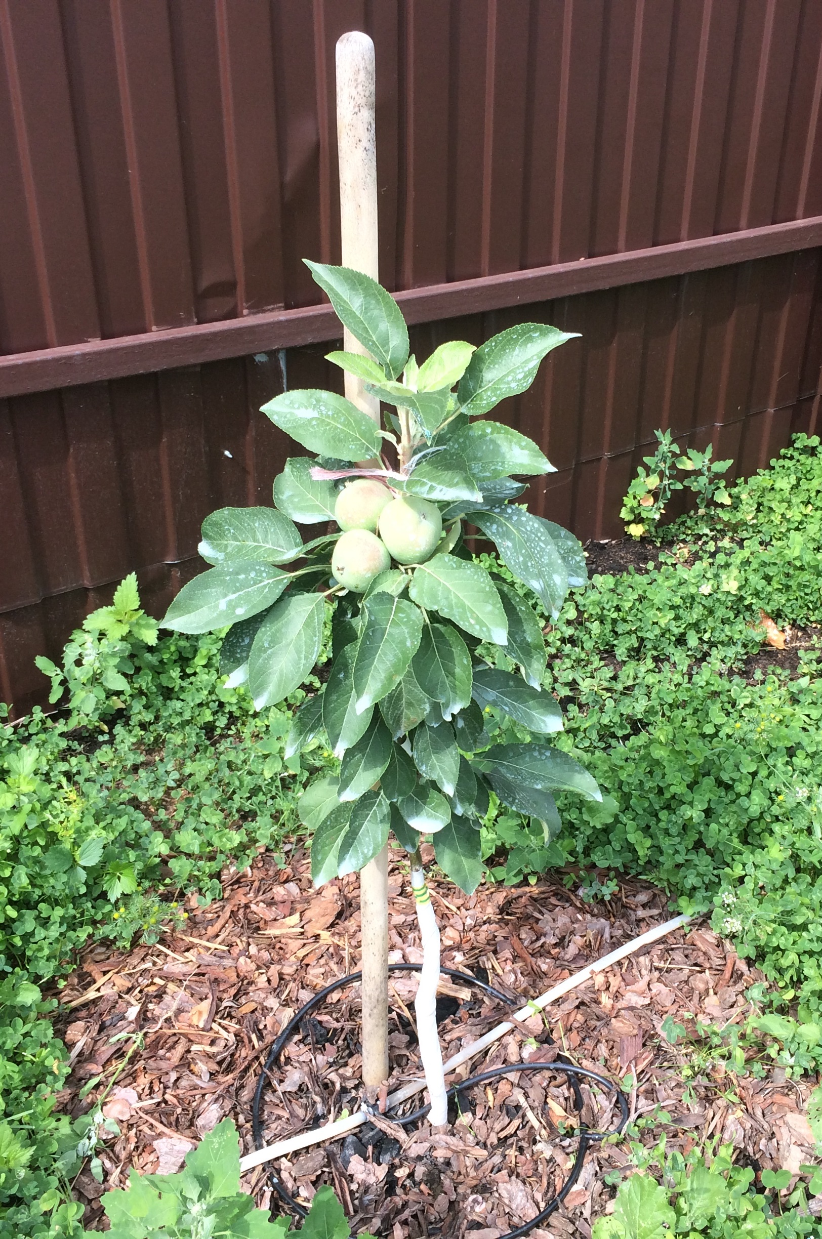 И ведь кривоватый, и с полметра высотой всего... Оставил ему 3 плода, чтобы не надорвался.