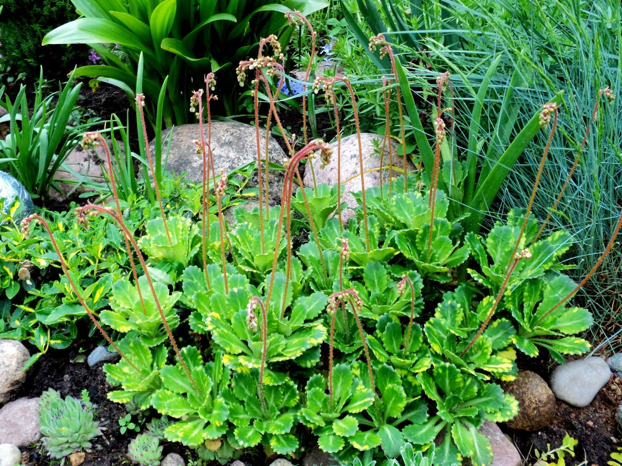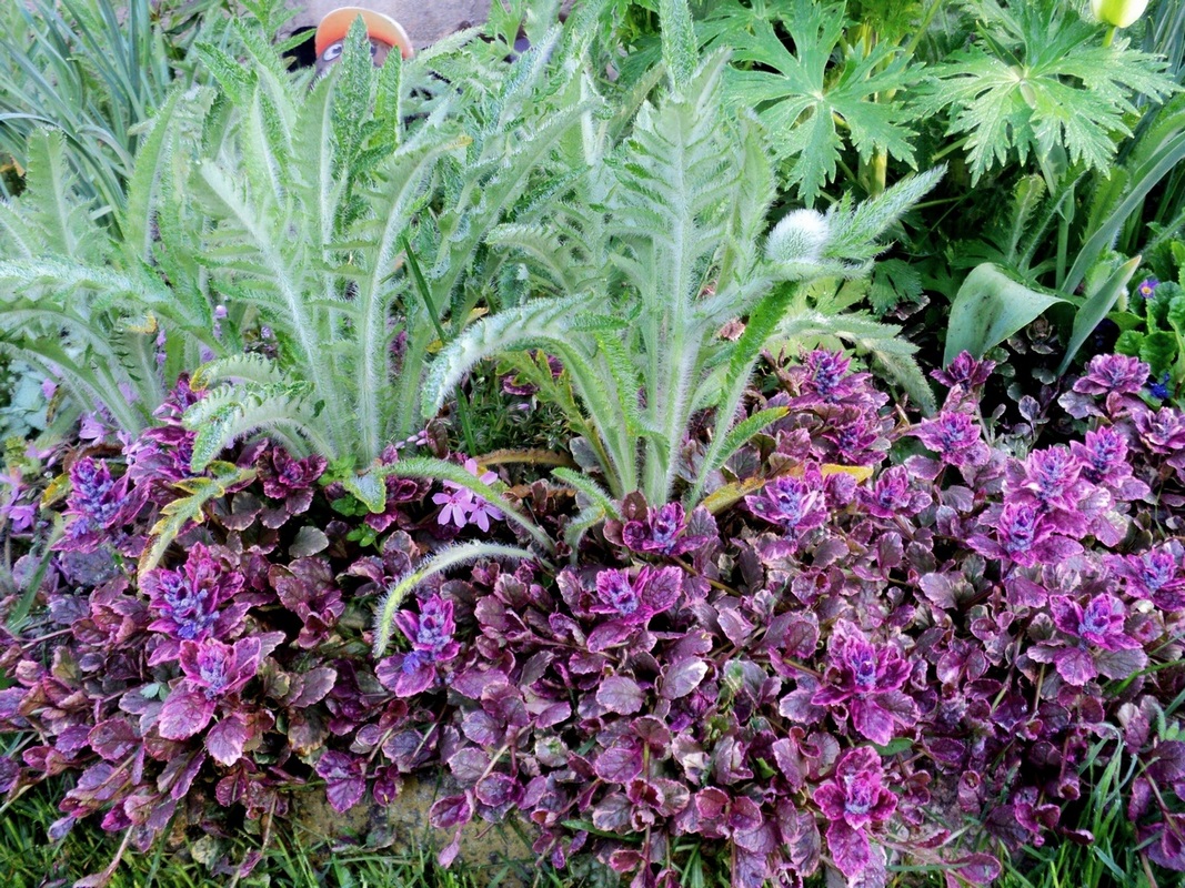 Дроникум достаточно быстро отцветает. Потом остается не особо сформированная кочка из листьев. Я бы его на передний край не стала сажать. Он прекрасно смотрелся бы выглядывая откуда-то из-за ирисов.