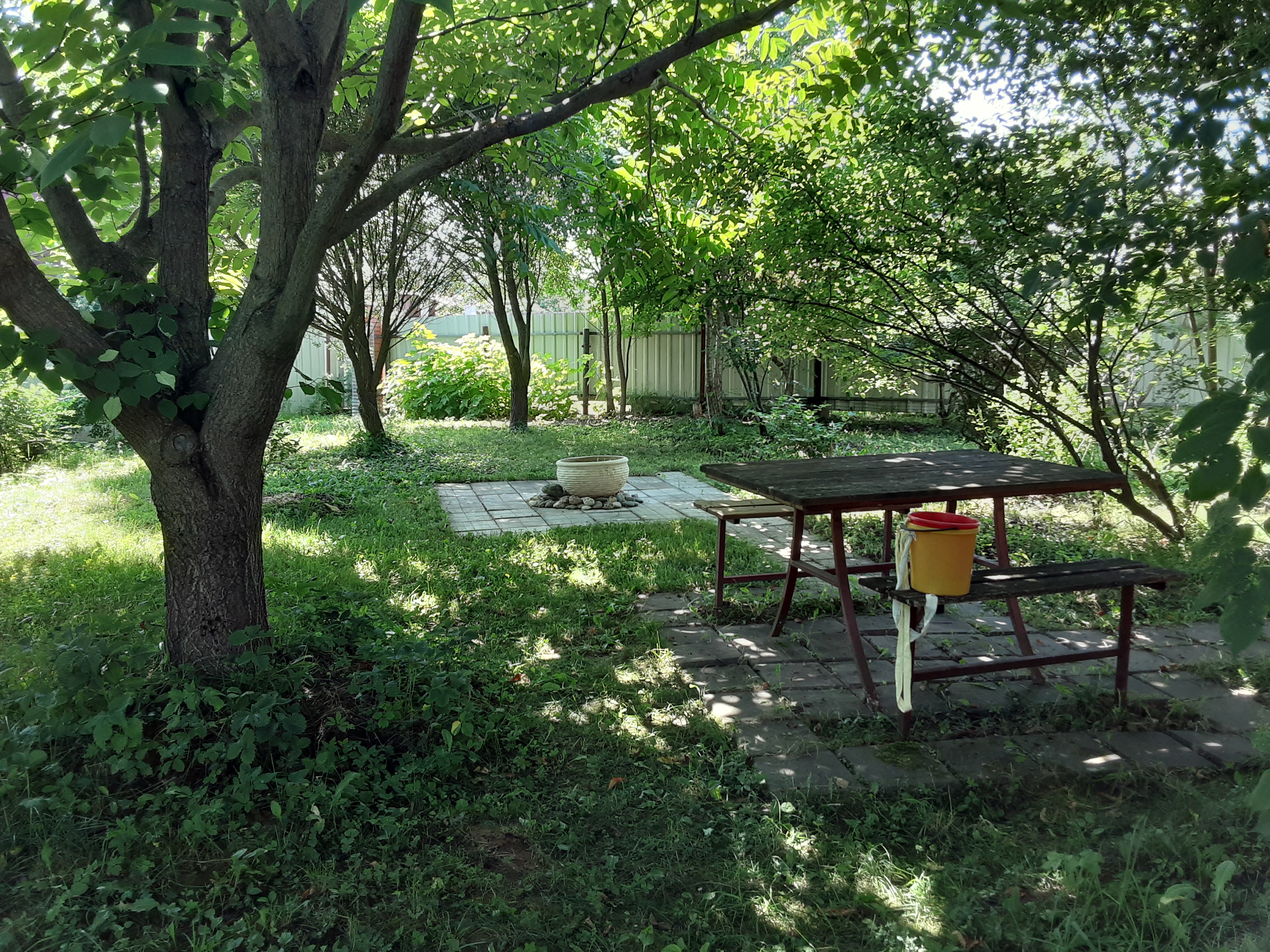 Если хочешь добавить светлых пятен в сад (я тоже считаю, что они простонеобходимы), не обязательно габионы городить. Во -первых, можно покрасить столик и скамейки в белый или в светло-серый цвет. Уже уголок по-другому заиграет и освежится.