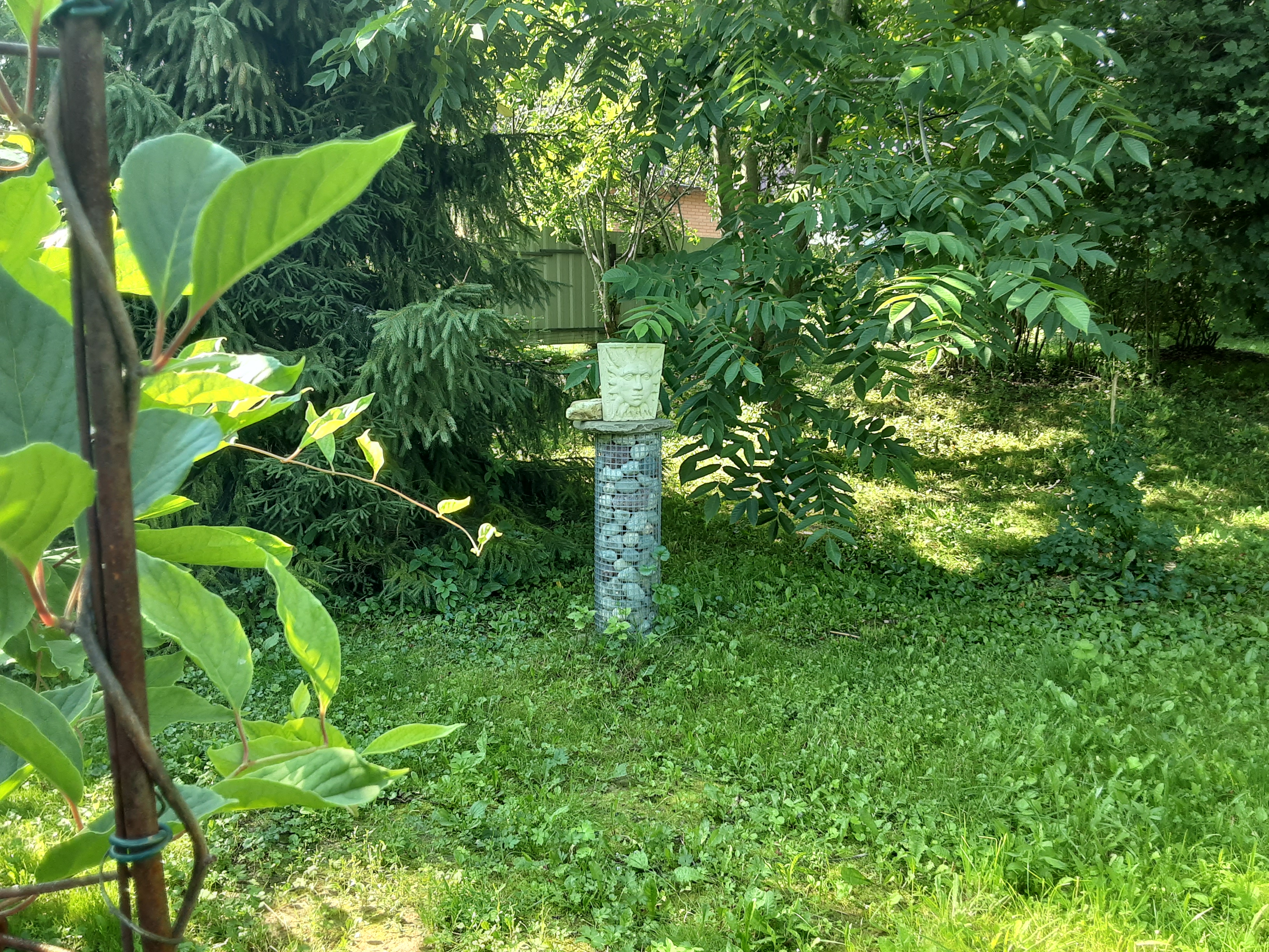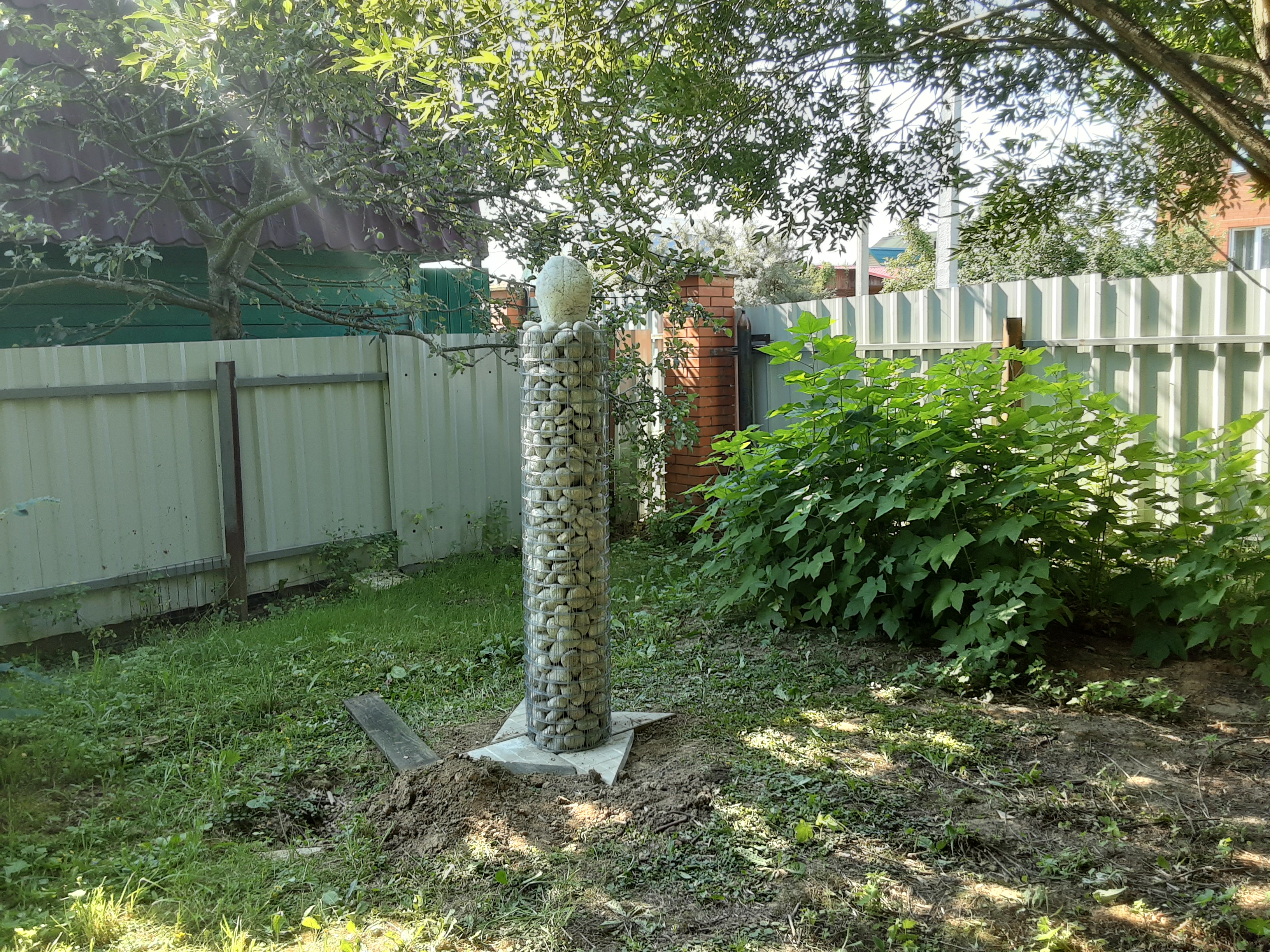 Гортензии-кусты мама не любит, жалко. Чтобы вашу здоровскую лавку-габион сделать нужна конструкция - четыре рамы с сетками. Это трудоемко, камней много надо. А готовые - дорогие. С сеткой- "рулоном", которая уже есть, можно взять поменьше камней(в середине её, как стержень, старый металлический столб будет для прочности) . Но идея какая интересная! Спасибо вам! И чего то мне отдельная колонна разонравилась...
