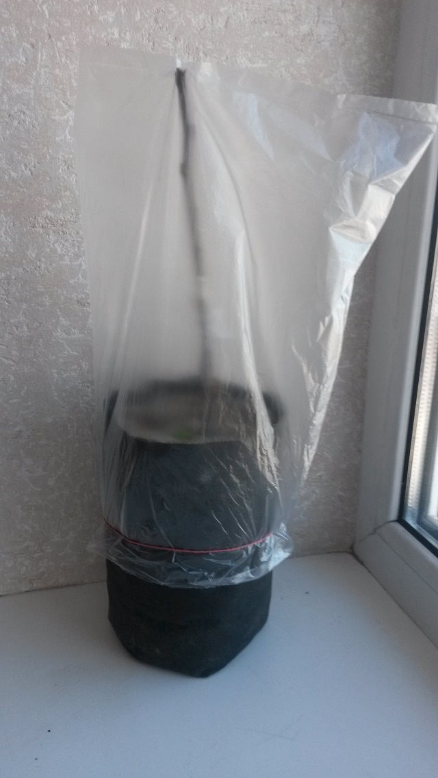 Накинуть пакетик оказалось не совсем трудным делом, намного быстрее и проще чем топить парафин и мазать кисточкой. И результат тоже хорош -за неделю прививки срослись и на срезе черенка образовался каллус, наполовину затянув срезы на привоях.