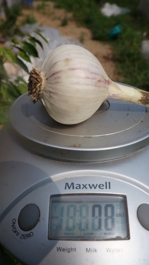 Сорт - ОБД (одна бабка дала) А это до обрезания стебля, что бы было видно, что это именно однозубка чеснока, а не, например, луковица. Но в чем смысл выращивания таких однозубок? С них получаются чесночинины с большим количеством мелких зубков. Проверено. Я для получения товарных луковиц высаживаю только средние однозубки. А крупные идут исключительно в маринад.