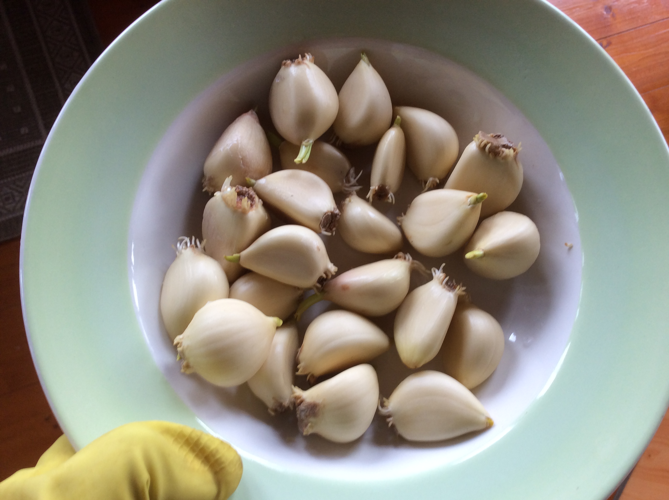 Тоже посадила сегодня немного чеснока, замочила на пару часов, чтоб корни тронулись в рост. Чеснок прошлогодний, долежал до посадки