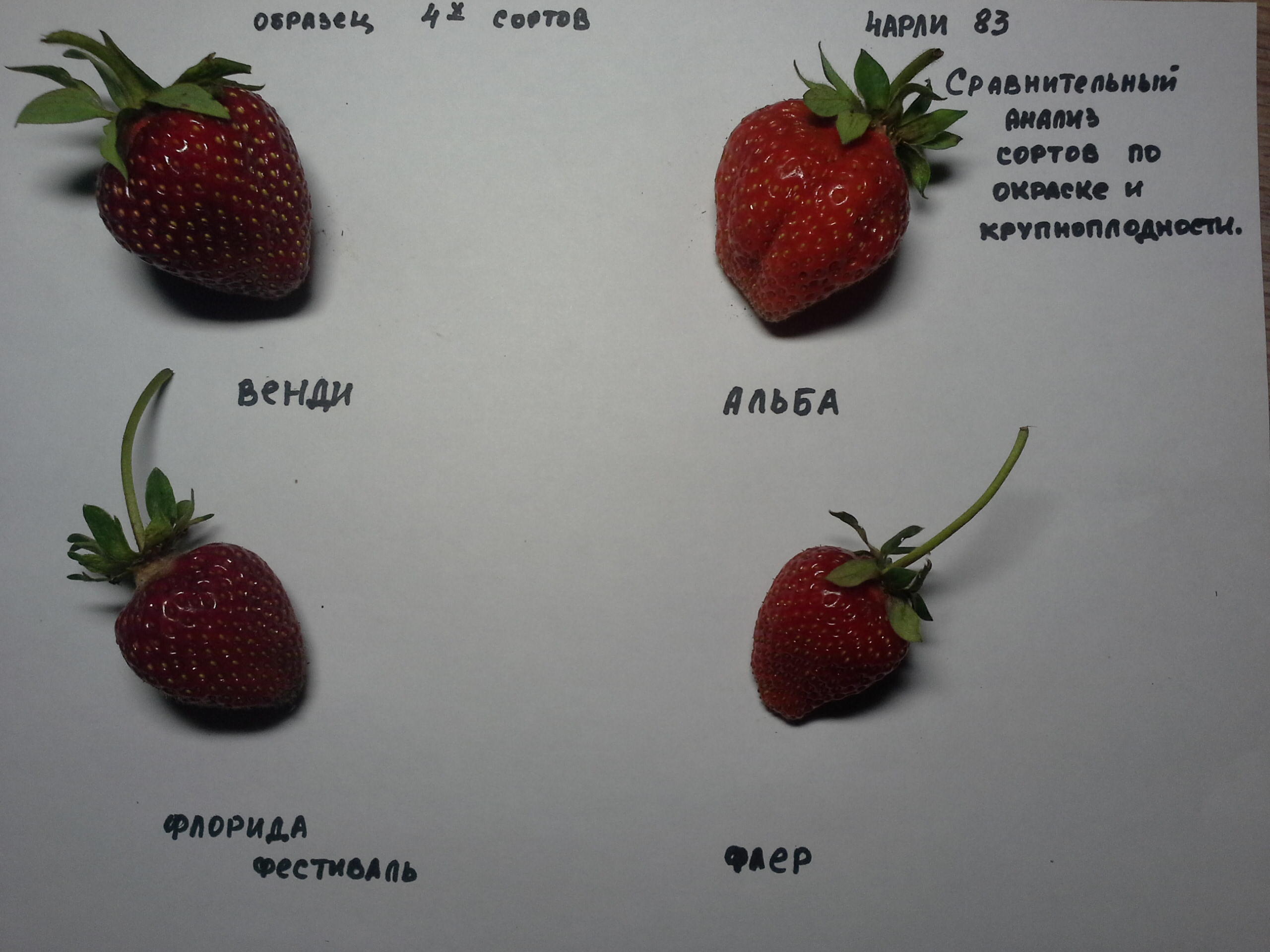 Ну тогда подождем гнилого лета. А пока можно начинать собирать материал. Потому как в данном виде на сравнительный анализ не тянет. Да и по имеющимся фото делать выводы нельзя. Во-первых, фото не очень качественные, ягоды не очень хорошо видны, часть ягод затенены. Делать выводы о сорте по одной ягоде некорректно. Альба крупнее Венди, причем намного, а Флер по размеру не уступает Венди. Да и Флорида Фестиваль не такая уж и мелочь как на фото. Масштаба кстати также нет, поэтому выводы делать затруднительно. Ягода Сонаты выбрана нетипичная, Вима Ксима тоже непохожа. Сортов Заря и Русь не существует, есть Кокинская заря и Русич.