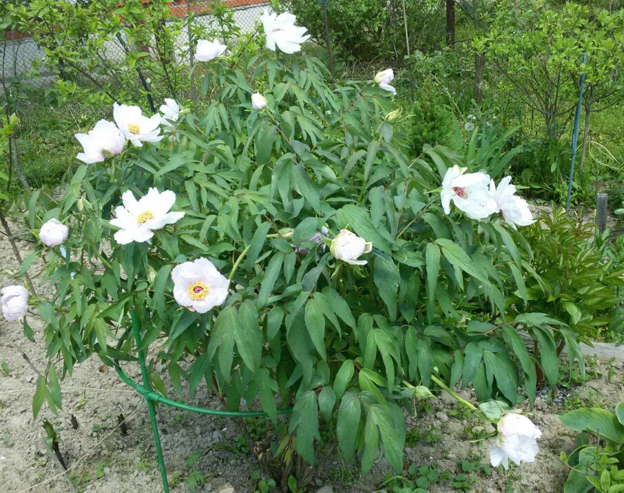 :D Нэньки У. нету? Несмотря на погоды, у меня расцвели древовидные пионы, второй - из Лариной закупки. Сорт не могу опознать по фото - фотография прислана мужем и имеет подпись "красный цветок", читать этикетку отказался.