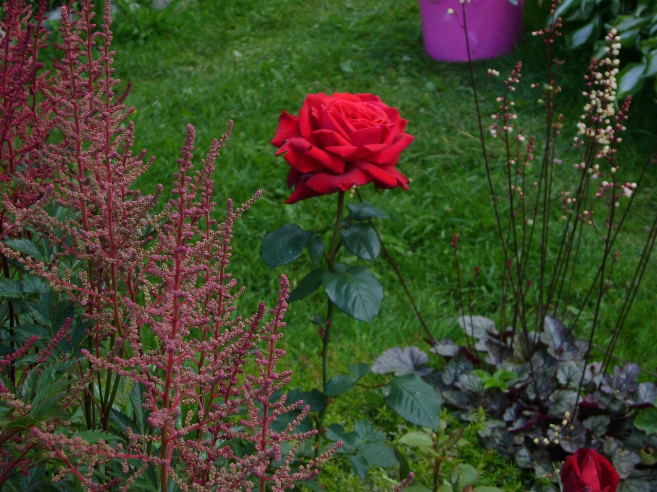 Красивая у тебя роза!!! Я бы ее начеренковала, и под пятилитровую бутылку, укореняться. А потом подсадила бы к уже сидящей в цветнике. На мой взгляд к ней Аспиринка подойдет -обильная, цвет белый иногда с розовинкой, зимостойкая. У тебя в цвете Sophia Loren малиновый присутствует (холодный оттенок красного).