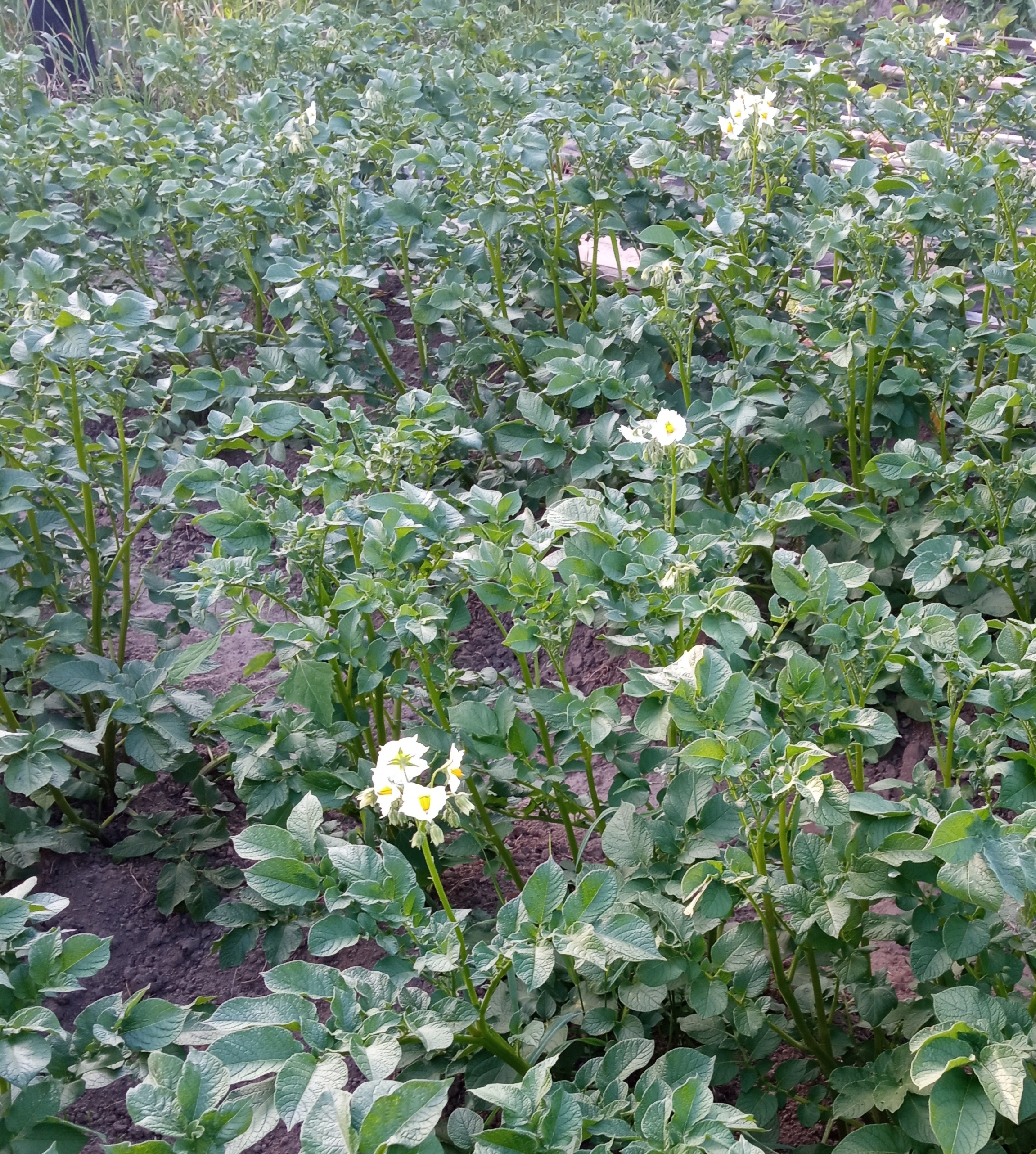 Но вот новых сортов у меня порядка 150 кустов. На таком количестве реально раз в неделю проходить внимательно, уничтожая икру жуков. В результате почти все кусты чисты, на них надеюсь получится обойтись без обработок совсем. Если у меня получится добиться урожайности "ведро с трёх-четырёх кустов", я планирую перейти на двуполье, сажать по 300-350 кустов, а остальное оставлять под сидератами. Такое количество кустов реально контролировать вручную.