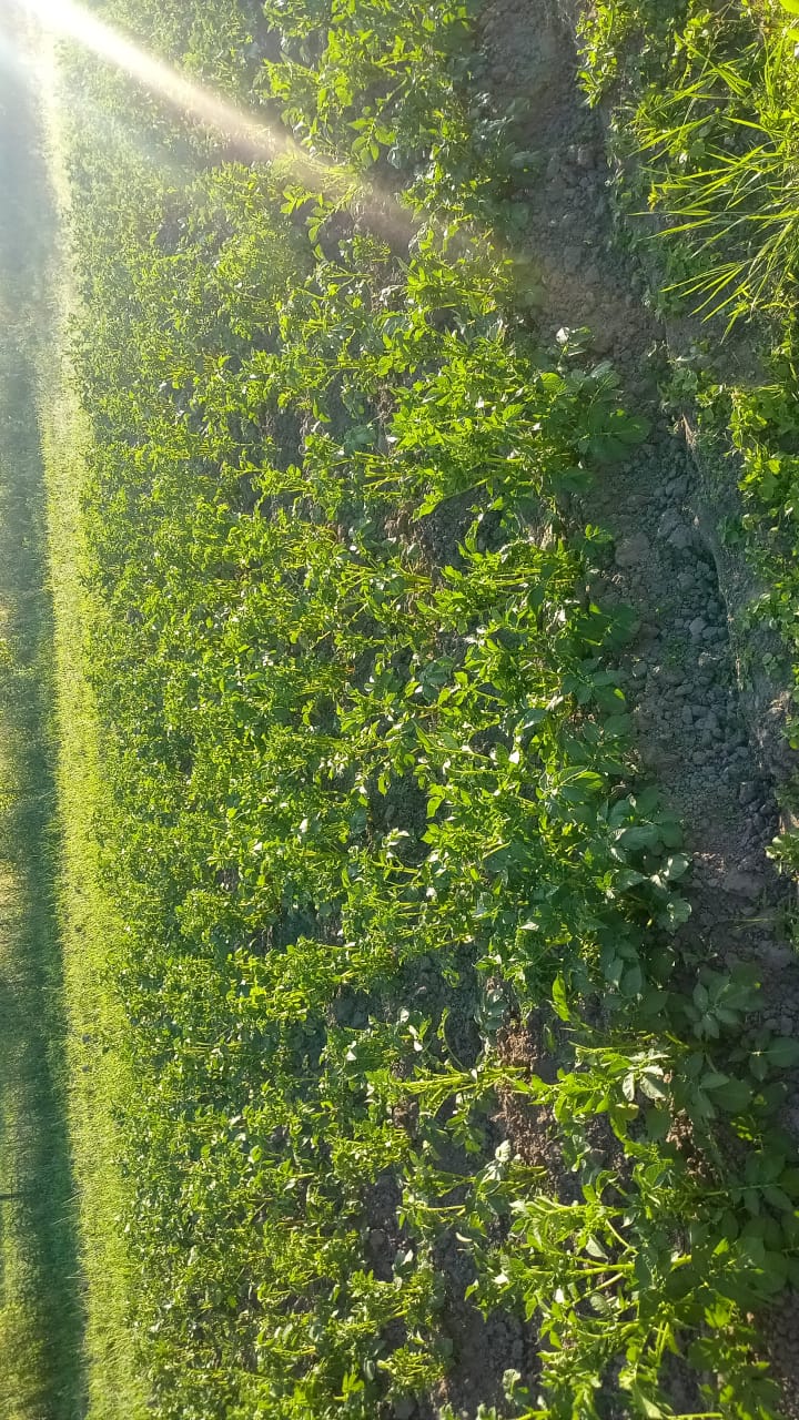 Картошка на сегодняшний день. Инара(два ряда справа) не показывает не малейшего признака вырождения, кусты, как с конвеера, все на подбор. Единственный крупный недостаток этого сорта, это раннее пробуждение. Ла Страда тормозит, зато пытается зацветать.