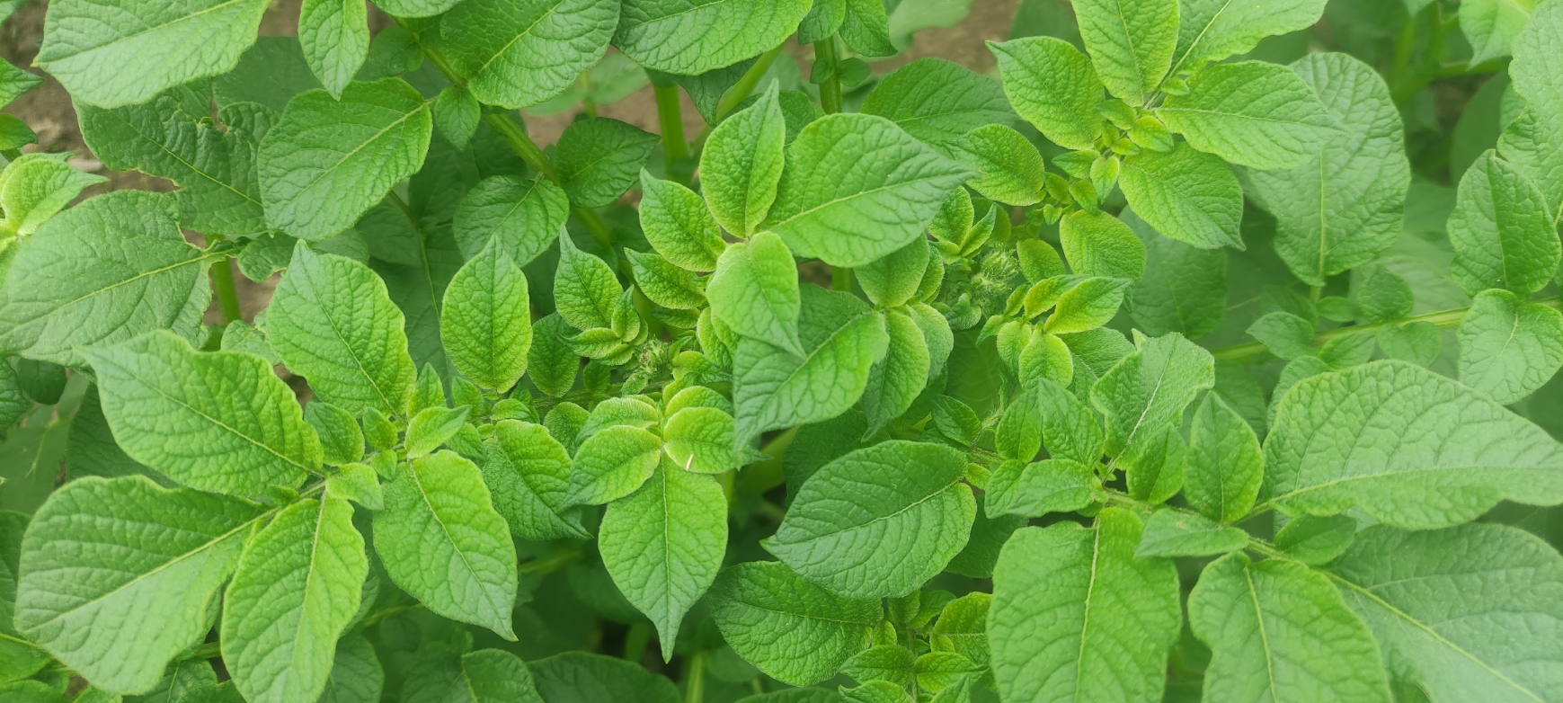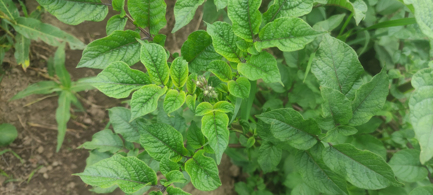 Ботва отличается от всех сортов картофеля, которые я видела. Ни с чем не спутаешь. Здоровые кусты, толстые стебли и я бы сказала, что мало листьев по сравнению с Вегой или Скарбом.