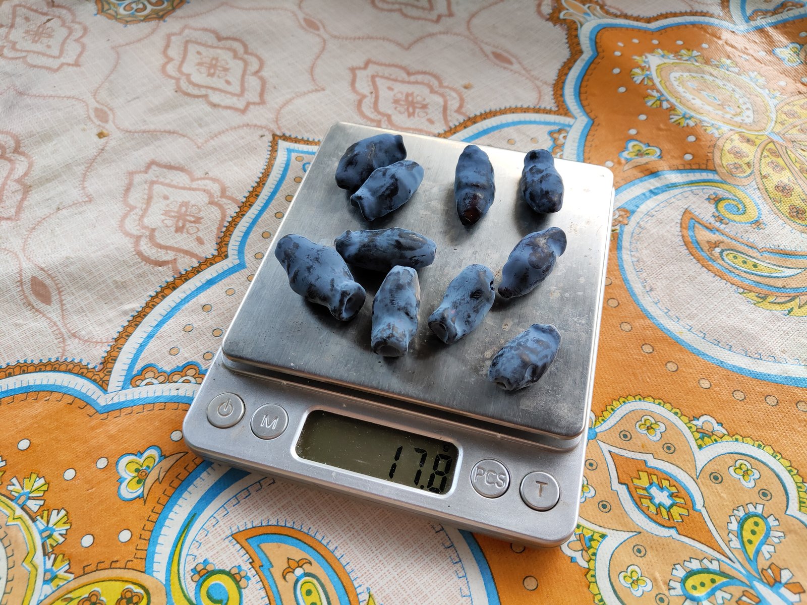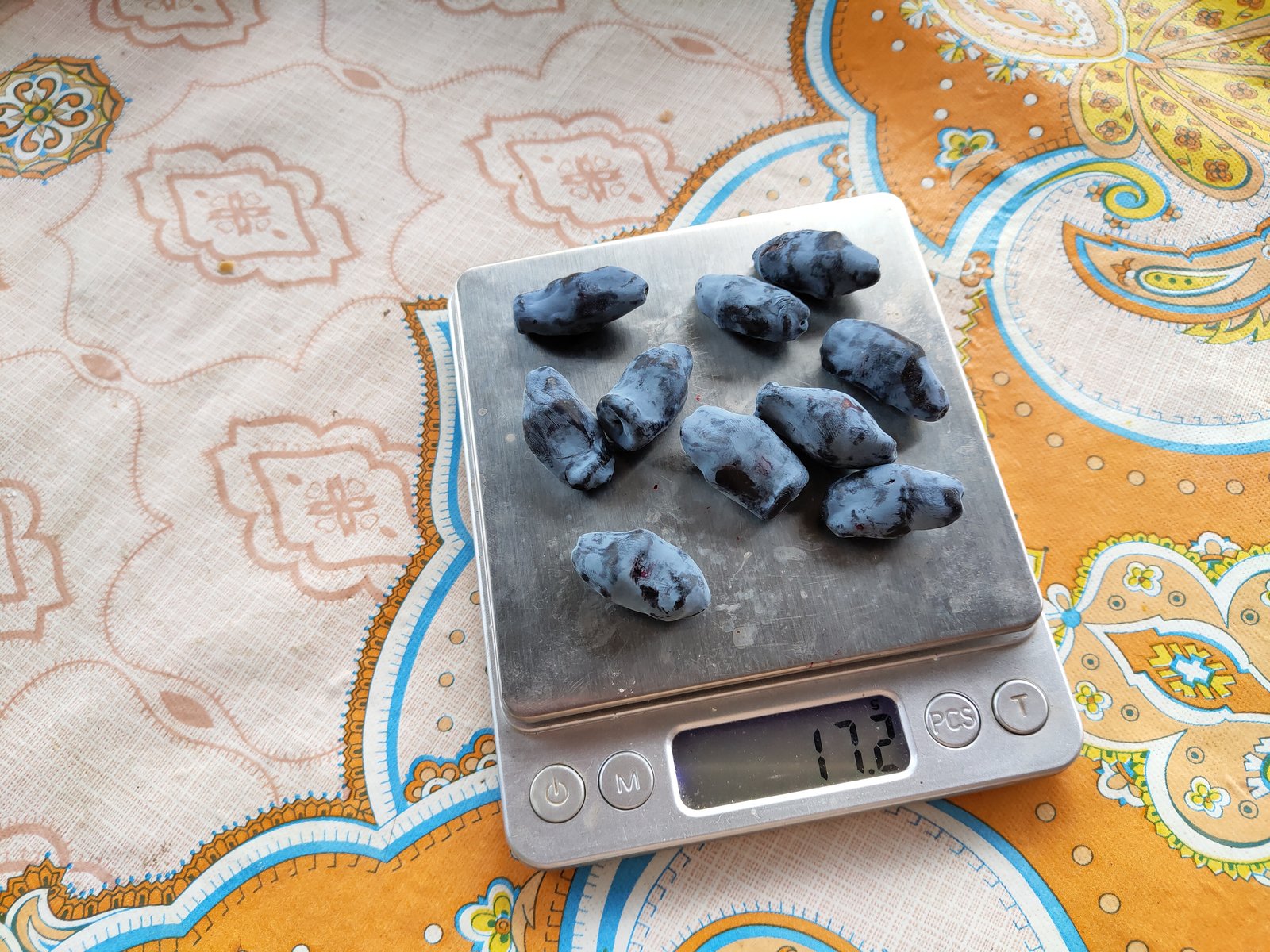 На даче кусты молодые, поэтому в этом году негусто - по стакану ягоды с куста. Больше всего по вкусу понравилась Стрежевчанка. Размер ягоды также не подкачал. Из минусов - много веток засохло после зимы.