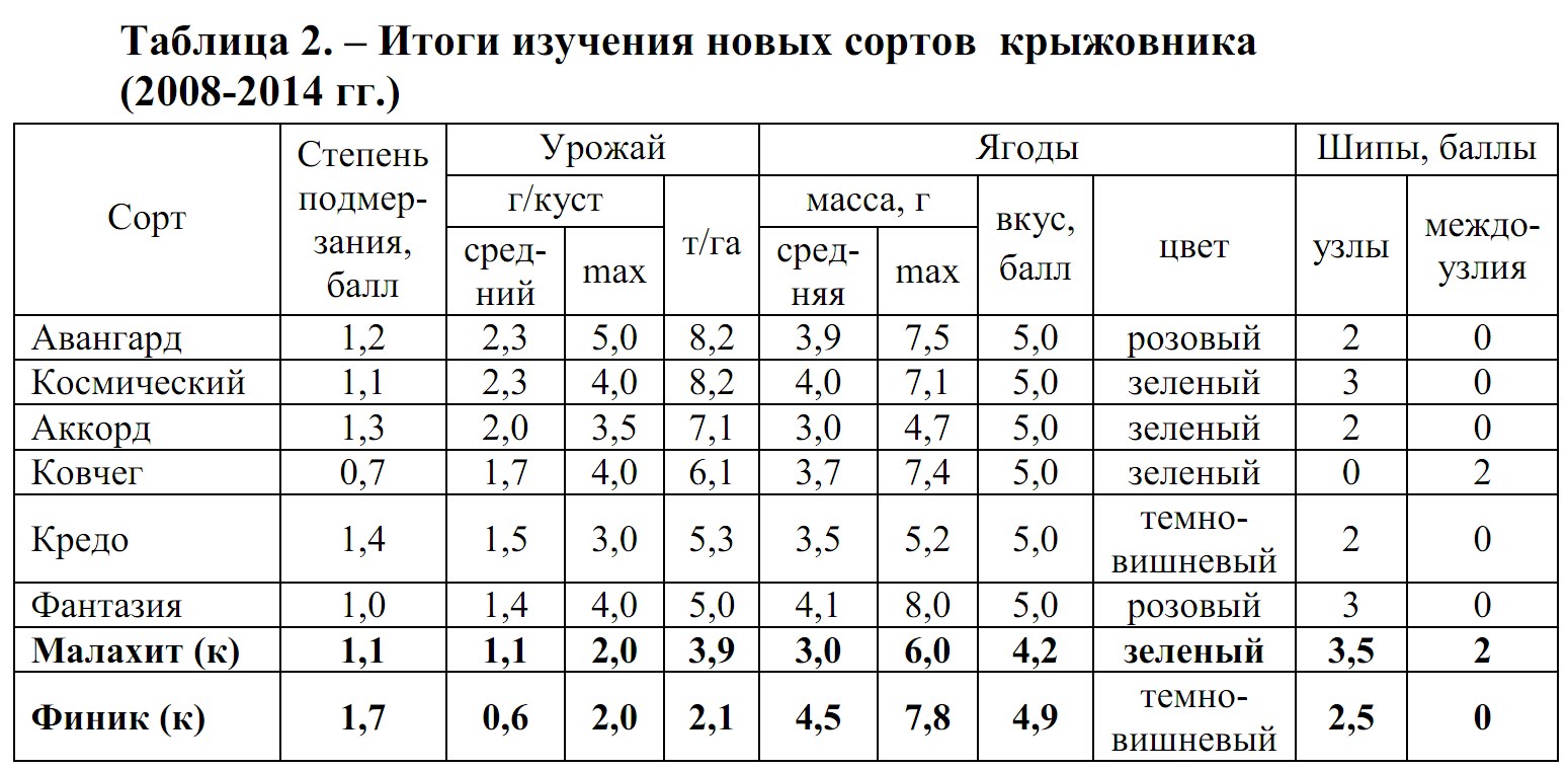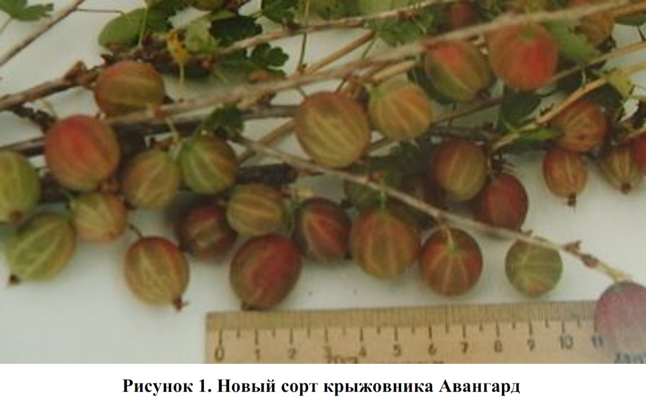 Авангард – сорт среднепозднего срока созревания, универсального назначения, получен в ФГБНУ ЮУНИИСК от опыления сорта Слава Никольска смесью пыльцы сортов Африканец и Слабошиповатый 2. Автор – доктор с.-х. наук В.С. Ильин. В государственном сортоиспытании с 2010 года. Зимостойкий, высокоурожайный, средняя многолетняя урожайность 2,3 кг/куст (8,20 т/га), максимальная 5,0 кг, самоплодный сорт. Ягоды крупные (3,9-7,5 г), овальные, одномерные, розовые (рис. 1).