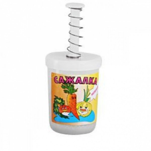 Такой как на картинке,что-то не получилось, подружилась с кругленькой с носиком - в коробочке есть отверстия под разные размеры семян, дырочка напротив носика выставляется и семена по чуть-чуть высыпаются, на носике небольшие выступы, тормозящие семена.