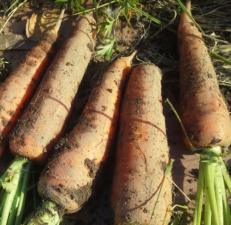 Сажала нынче Канаду, Дордонь, Наярит.Почва глинистая, обычно вырастет очень плохая морковка.Эти удались на славу:крупные, без трещин, вкусные, сердцевина большая, но ярко оранжевая, как и мякоть.Плоды конусовидные с острым концом.Сеяла 10 июня, морковной мухи не было.Не знаю, как лежать будет.Храню в погребе в цинковом корыте.Обычно пересыпаю песком, но нынче из-за постоянных дождей песка не набрали.Переложили слои и сверху плотно укрыли еловым лапником.
