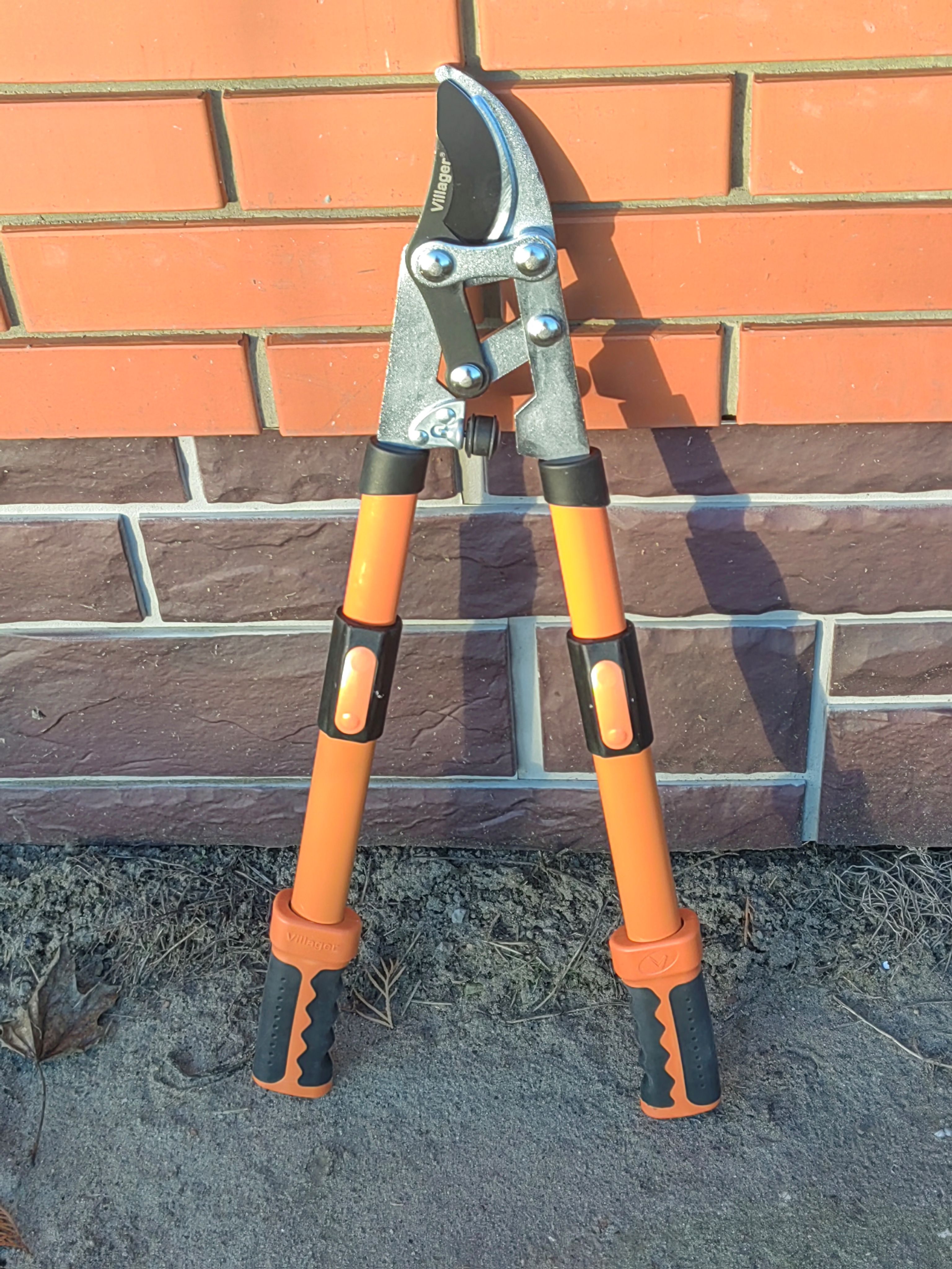 Продолжу про сучкорез Villager LS112. Во время тестирования приятно удивило легкость изменения длины ручек.Не нужно перехватывать, давить, тянуть, даже останавливаться.На все уходит 1-2сек. срезал наваерху, 1-2сек и уже режешь укороченным внизу.Если глядеть со стороны можно даже не заметить, как это происходит.