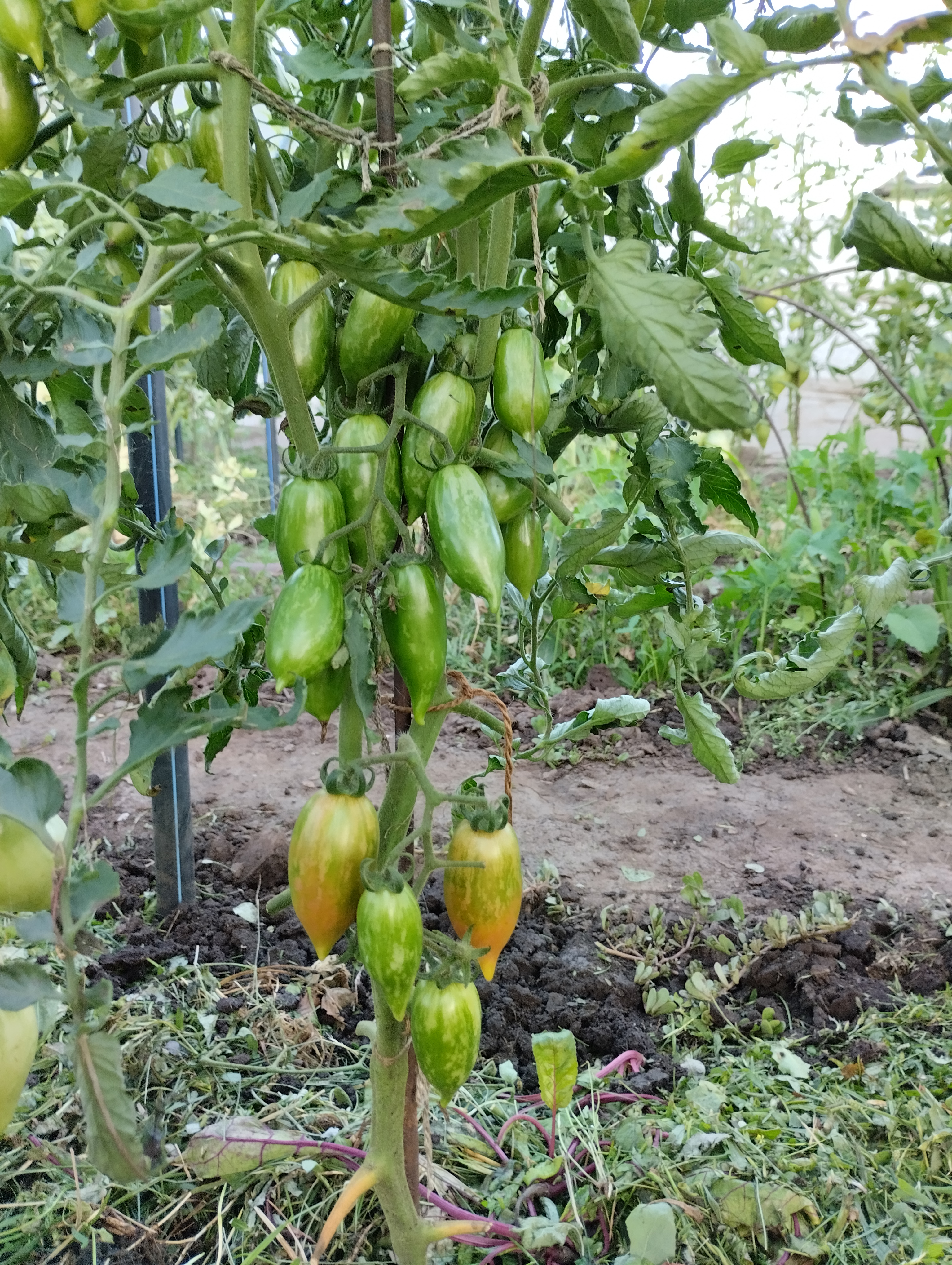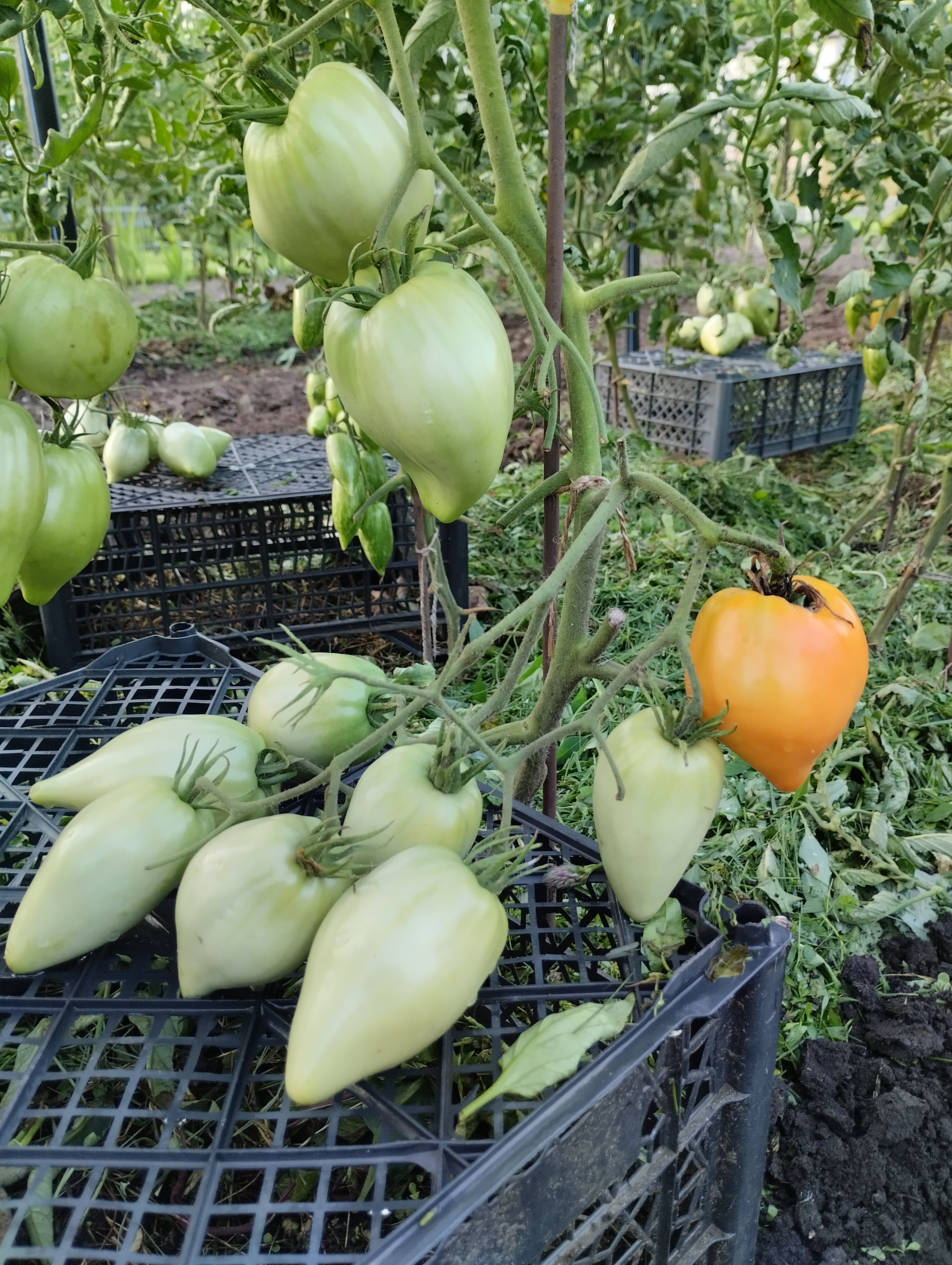 Де барао царский (оно же Славянка), которое с носиком- прописка на все времена! Вяжет 16-ю кисть на четыре ствола, и ещё только июль, нижние уже спеют. Вкусный и на еду, и после дозаривание в ящике, и в банках. Медаль!