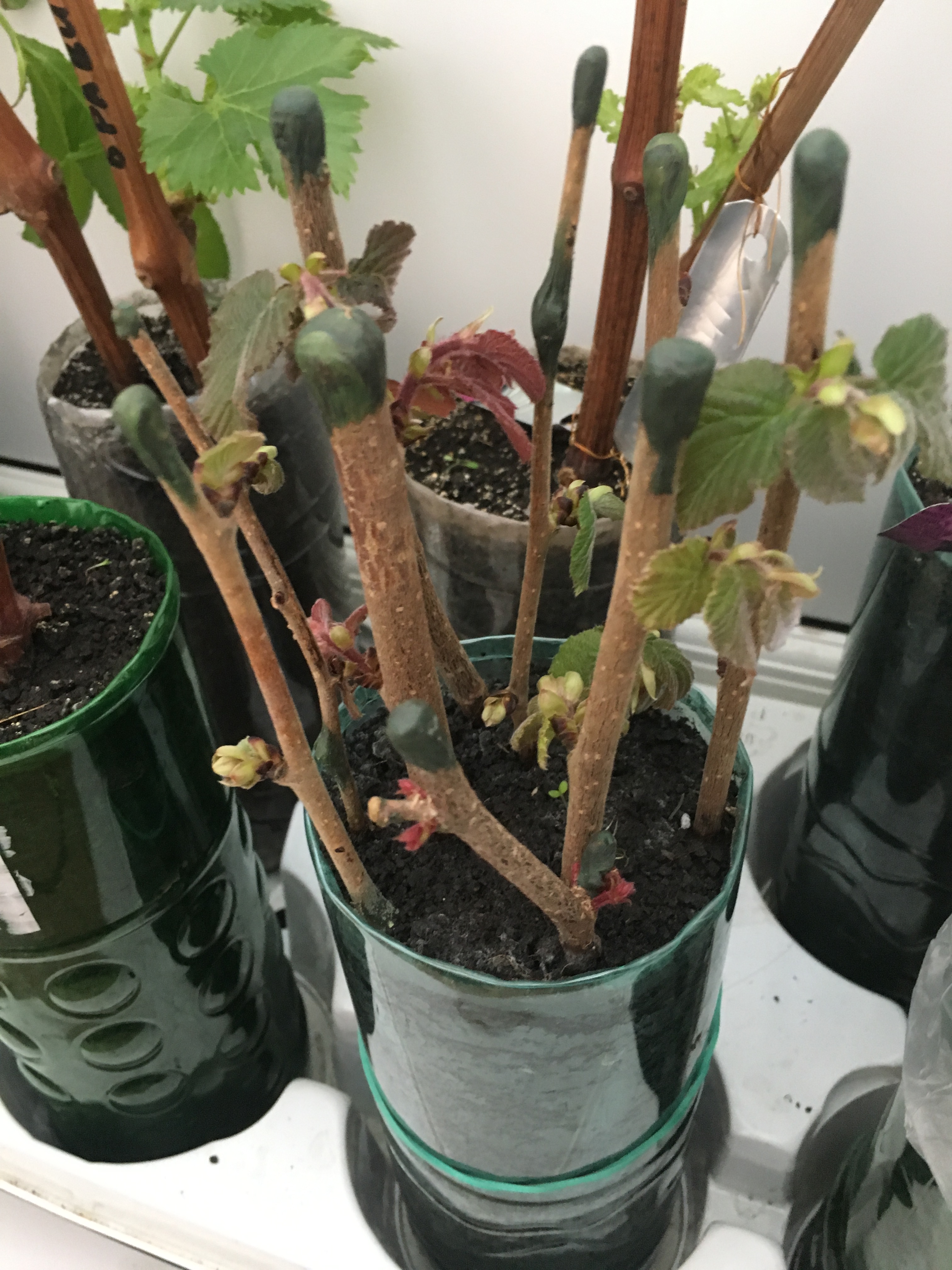 Черенки винограда с корнями посадил в грунт ( Укоренял в воде). Рядом с краснолистным фундуком (см. фото). Если через прозрачные стенки не видно корни черенков винограда, хотите доказать что черенки винограда тоже без корней?