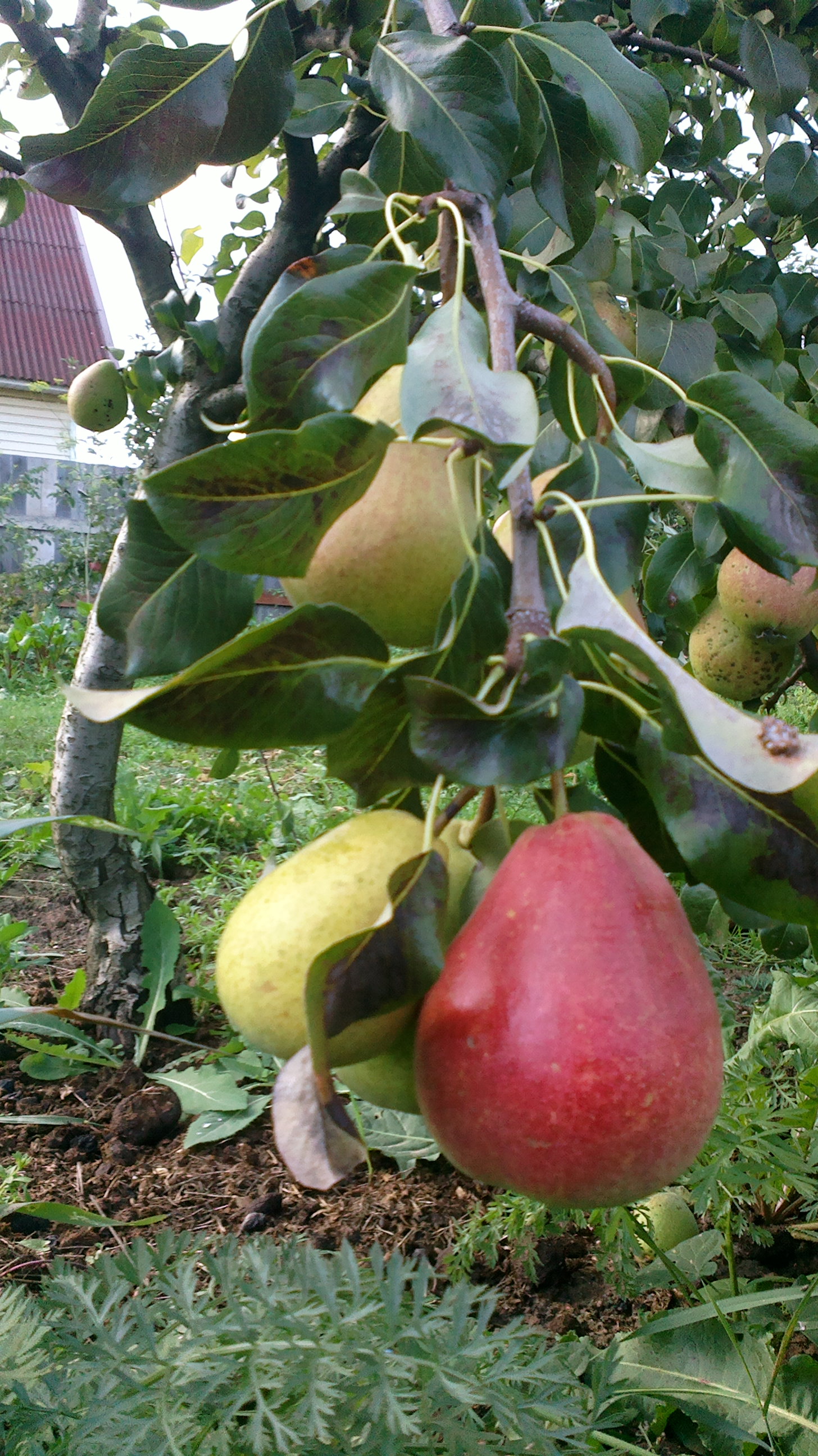 Примерно год назад писал о доставшейся в наследство (вместе с участком) груше неизвестного сорта - http://forum.prihoz.ru/viewtopic.php?p=591788#p591788. Условное название Химбазовская или Бере Купавинская.