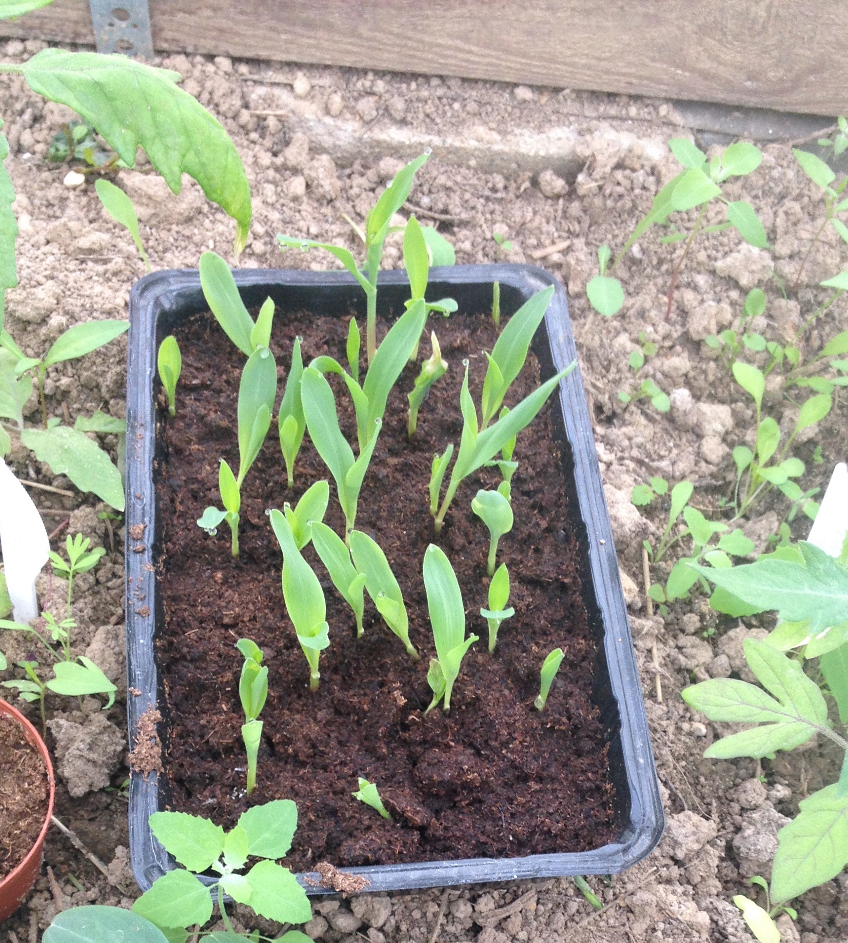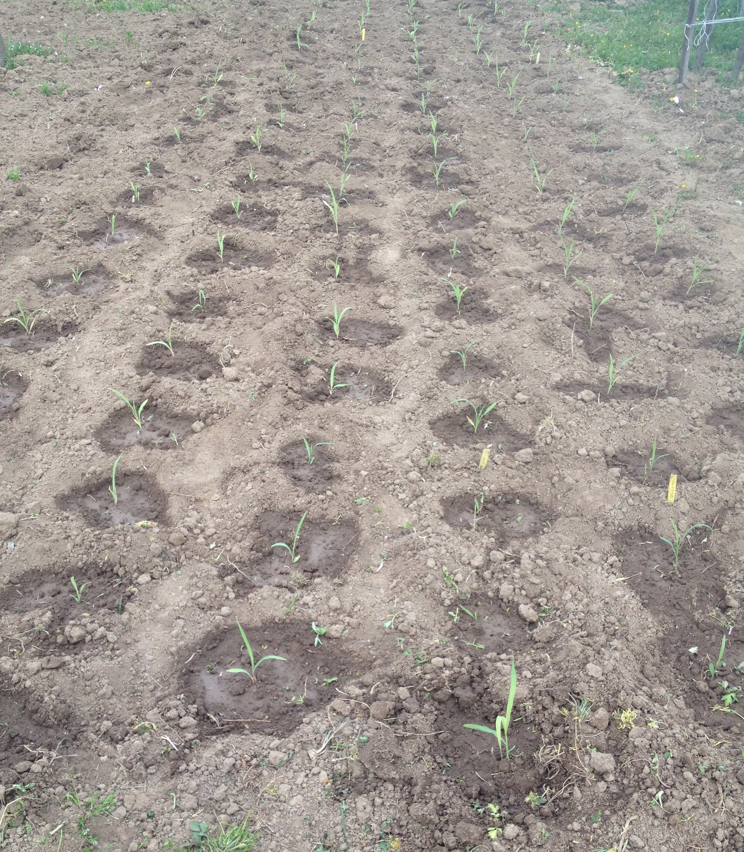 У меня немного кукурузы в стаканчиках в теплице стоит, уже по 4-5 листиков, а основные посадки замоченным и часть пророщенным зерном сразу в ог, только начинают всходить единичные.