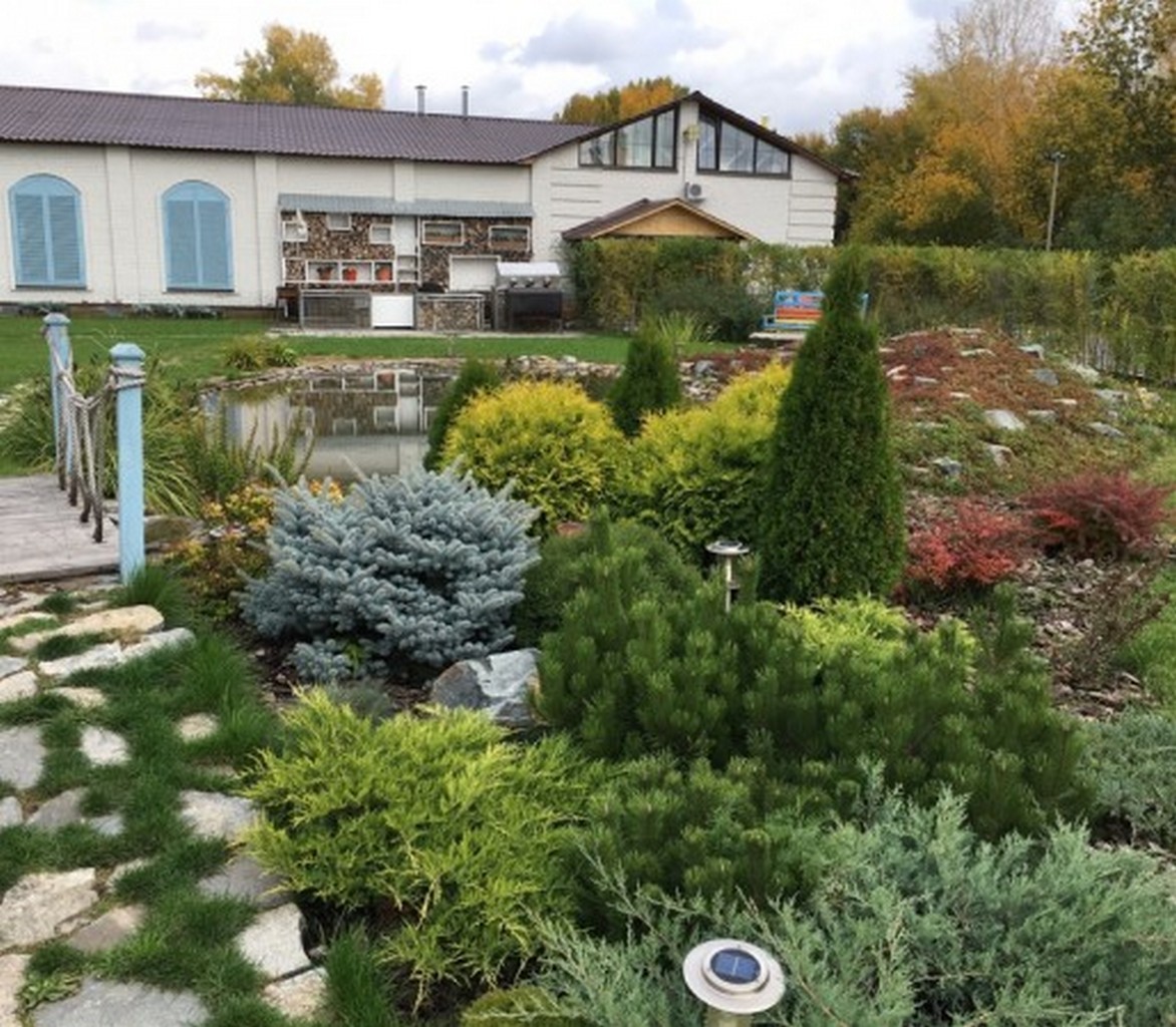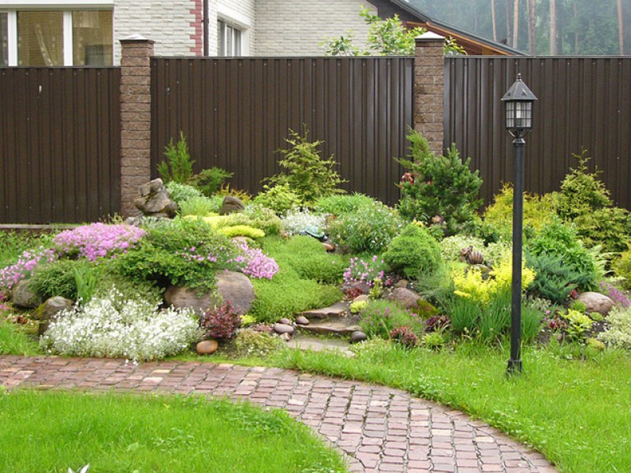 Здесь устроили рокарий - чуть поднят цветник и добавлены камни. Хвойные станут выше, Лена зря ты так решила, что будет всё микроскопическое. Если там тень, то можно сажать ели канадские, они по полтора-два метра к 10 годам становятся. В тени их укрывать на зиму не нужно.