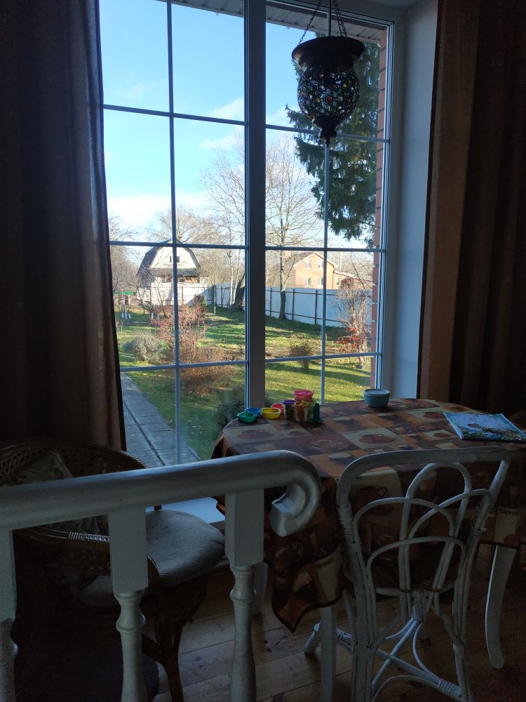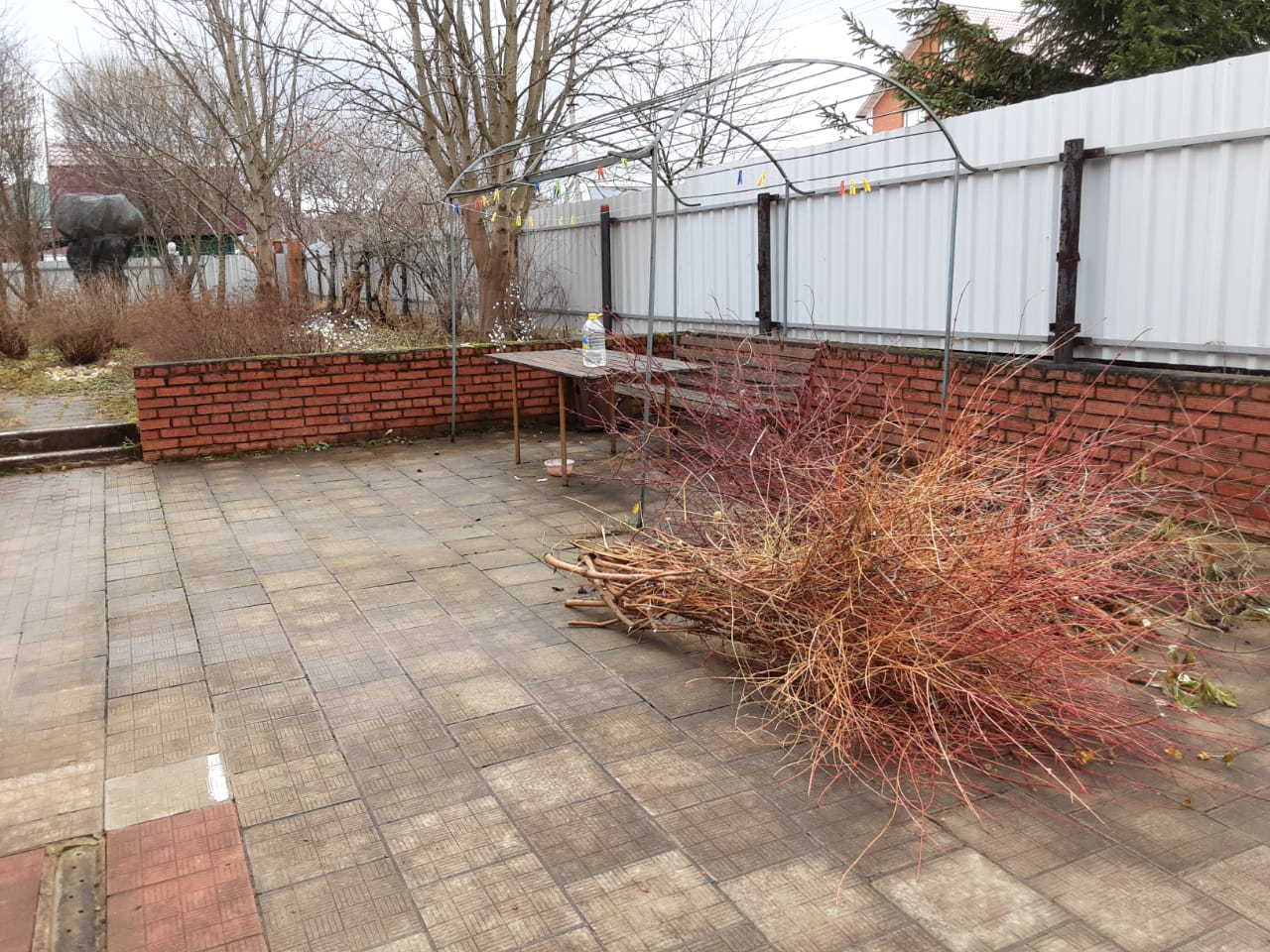 Здесь есть запрос на картинку из окна, в которое ну очень много и часто смотрят, а если на патио будут сидеть, то эта же картинка будет перед глазами. Сейчас с патио вид на шпалеру с виноградом одичавшим(это слева от дорожки на 1 фото). Виноград и шпалеру уберут.