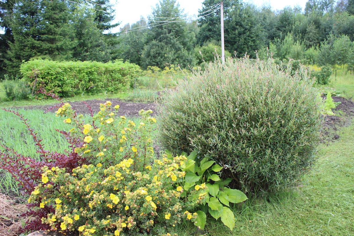 Лапчатку стригу, но не сильно. Один раз, начитавшись советов, посадила на пень, так она два года потом не могла прийти в себя. Стригу только, чтобы шариком была. Люблю шарики. Лапчаток у меня два сорта, но кустов много. И ВСЕ под шарик!