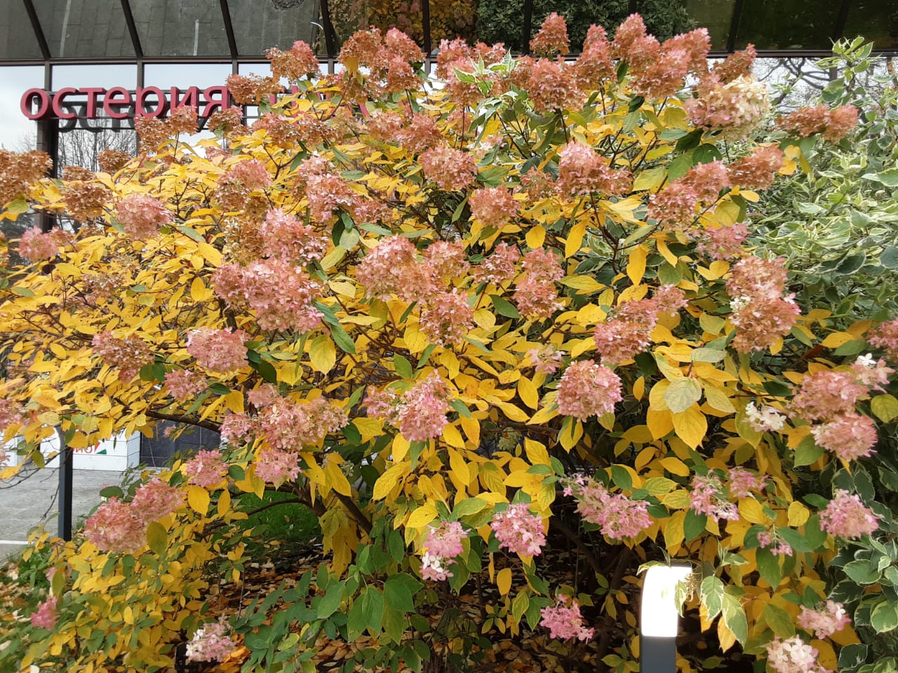 Я отдала ей метельчатые и древовидные гортензии , и теперь они там, у этого забора.