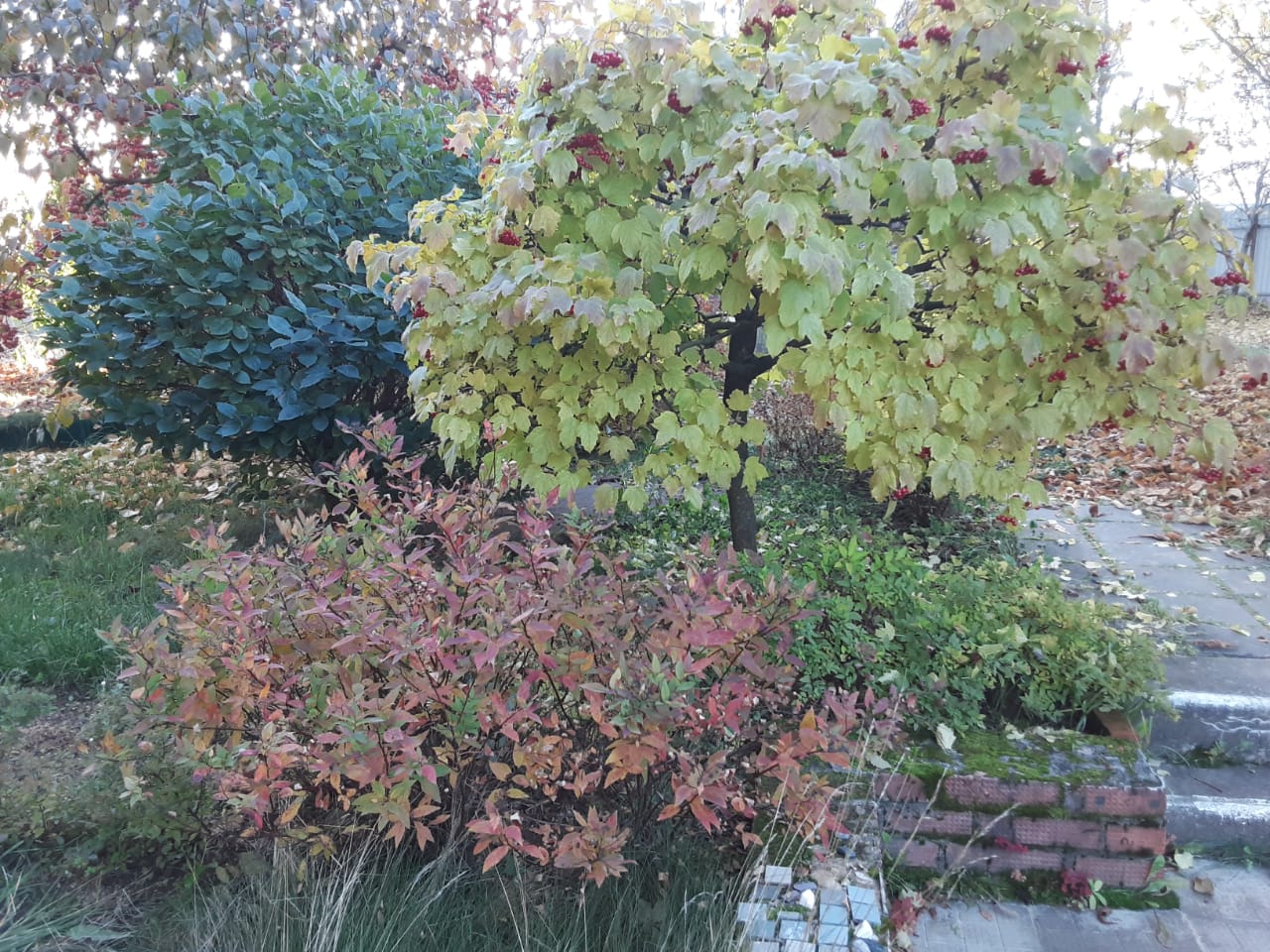 Калина есть солистом на газоне, тоже ее держат обрезкой, но еще одну вряд ли она захочет.