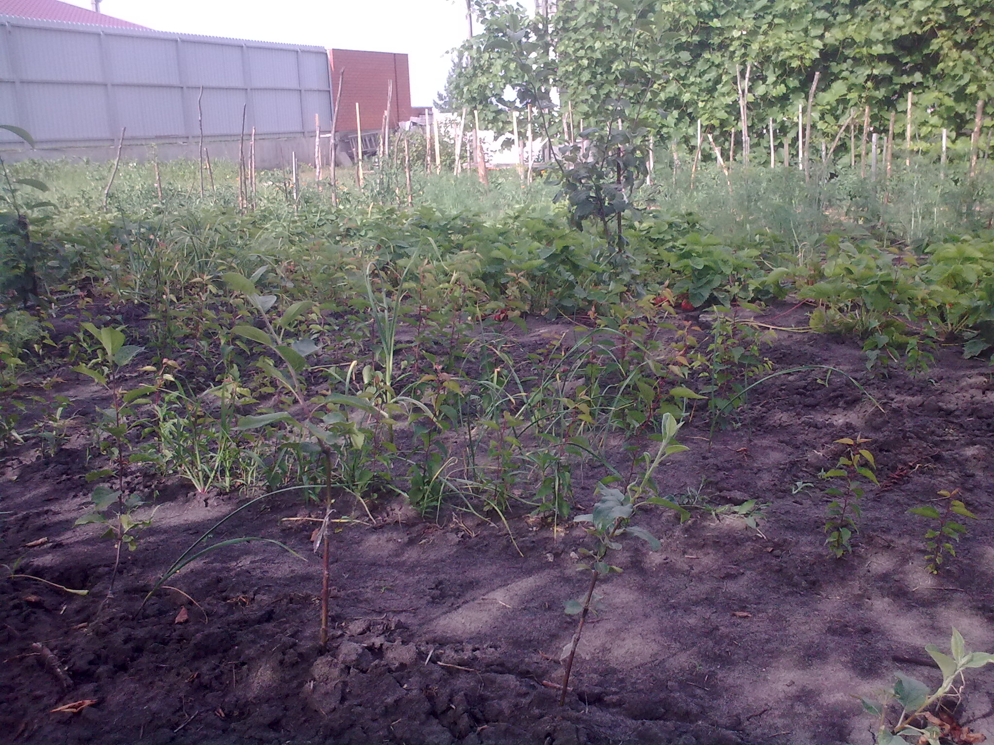 Во второй год весной, обрезка на высоте 70-80 см. и создание кроны. Удочек тут не будет, все саженцы будут с кроной(однолетней или двухлетней).