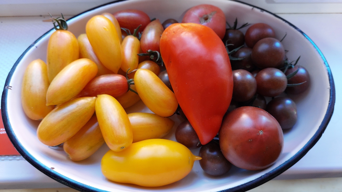 У меня так бывает, этот непрокрас, на некоторых сортах, не плечики, а именно плохо окрашиваются. На другой год этого может не быть, не знаю, с чем это связано.Ольгуня писал(а): ↑26.08.2024, 07:09 У меня Саммер Сан так и не зреет. Чуть желтизна появилась, и всё. Вчера попробовала на вкус - внутри становится мягким, снаружи зелёно- желтоватый. Что не так, не понимаю. Рядом v 355, полосатый Черри из с-з, не помню сейчас, как назывался, Рианна, все давно едим, а этому чего, не пойму. Не первый год сажаю, такого за ним не замечала. Хотела разноцветных в банках закрыть, но пока только красные (очень понравилось Черри закрывать без уксуса и специй, соль и сахар)