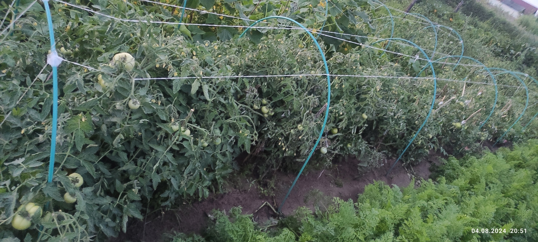 Томаты сортов Белый Налив и Агата поднавязали плодов, посажены густо - дикие джунгли, возможно что нибудь и нарастет к осени.