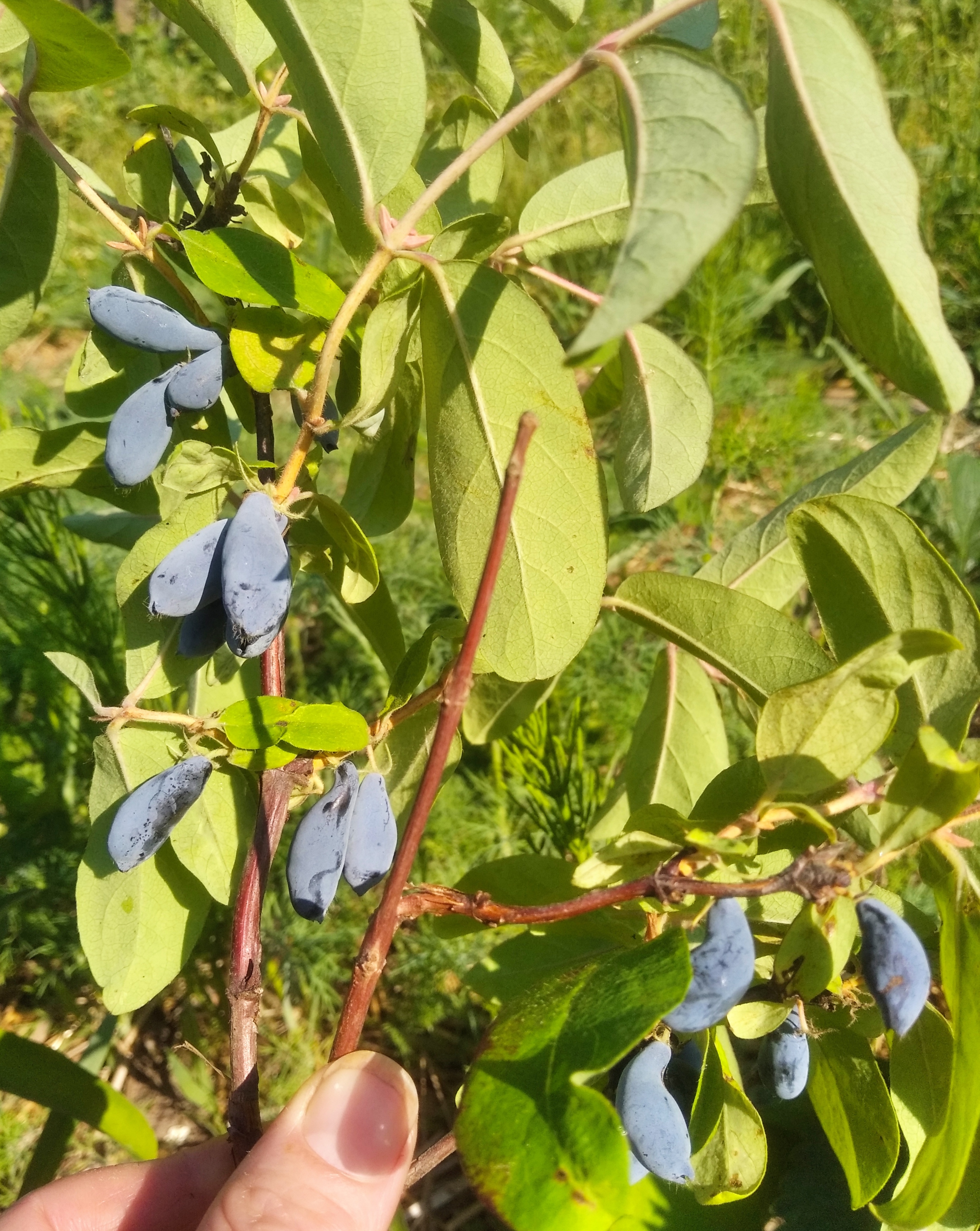 Не был в деревне две недели. Ранние сорта жимолости отцвели. Аквамарин оказался из их числа.