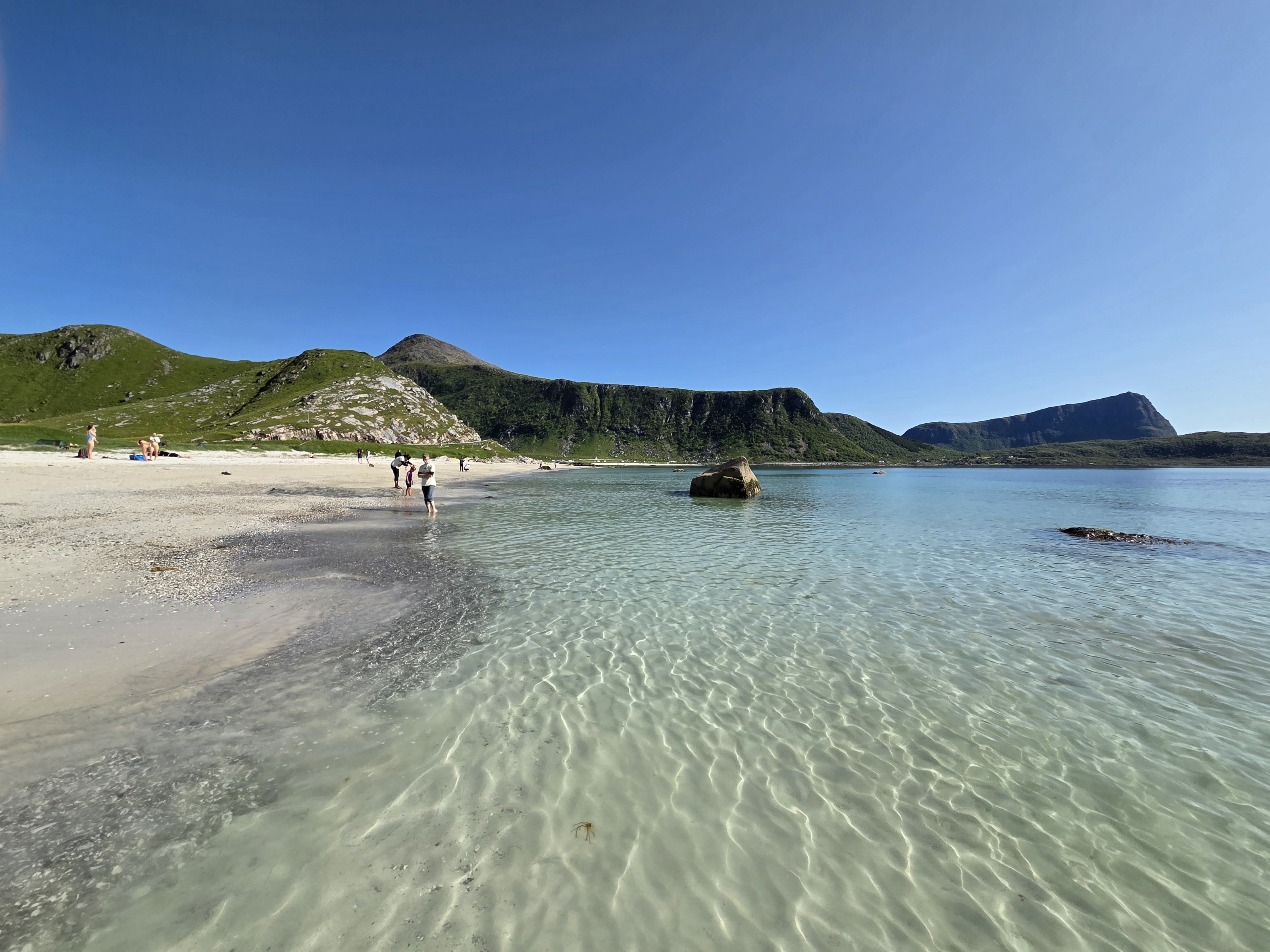 Ездил на север Норвегии на Лофотенские остова с прицепом автодомом. Красоты страшные. Как в Альпах, только воды много вокруг. Пляжи с белоснежным песком и прозрачной, изумрудный водой. Несложно влюбиться в это место. Несмотря, что место 180км за полярным кругом, растительность не заполярная. Высокие, пышные ели в предгорьях, точь в точь как где-нибудь в Баварии.