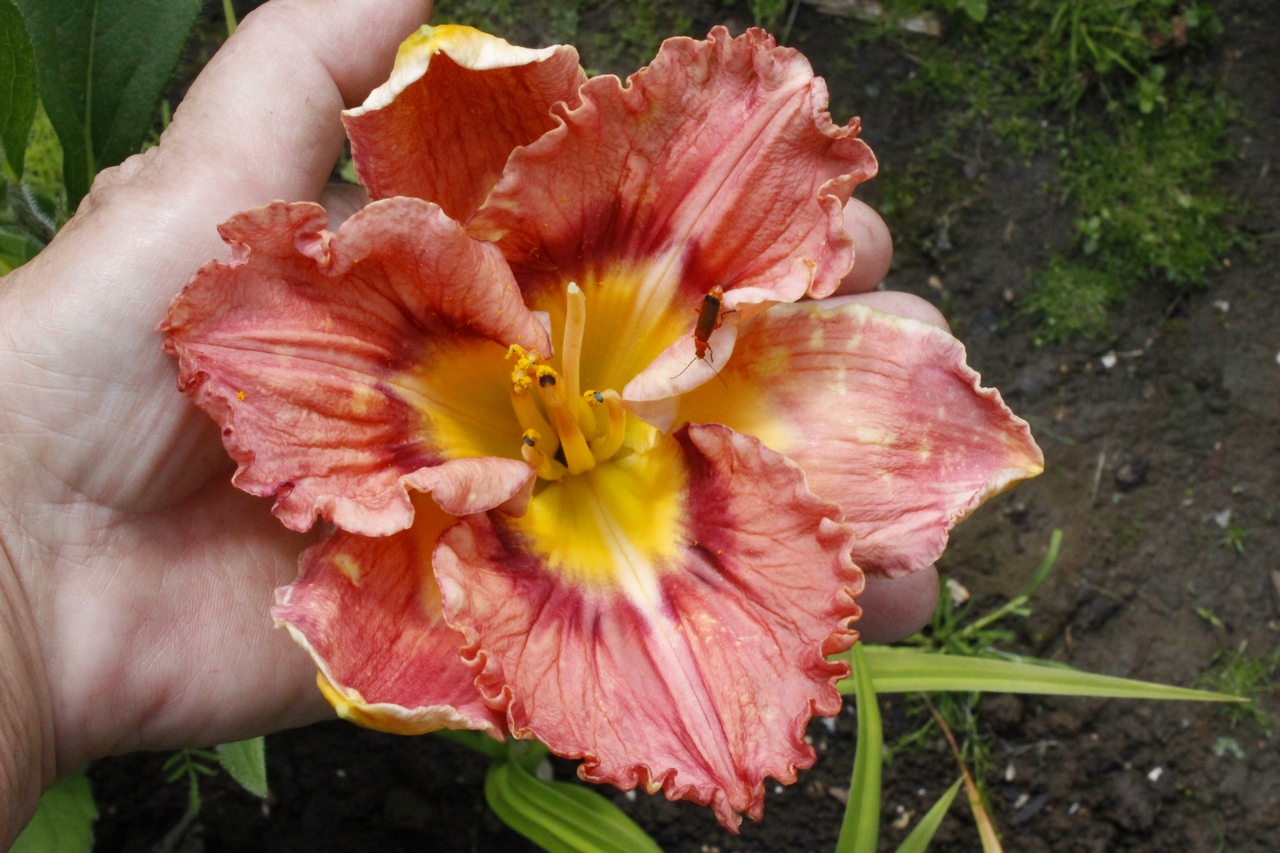 Сделала фото с рукой, чтобы понятен был размер цветка.