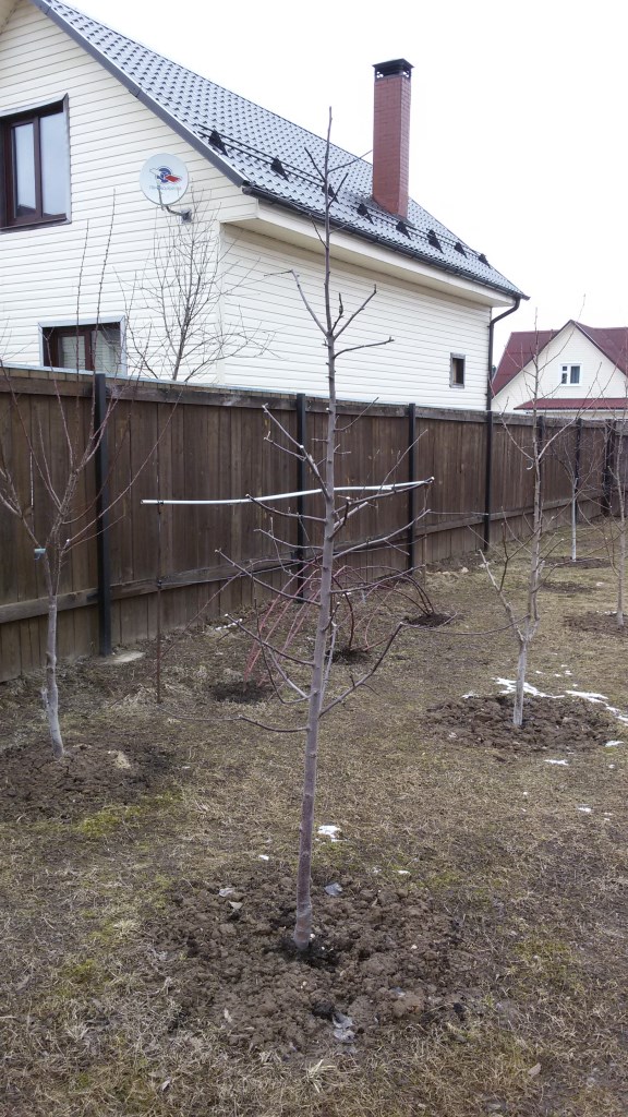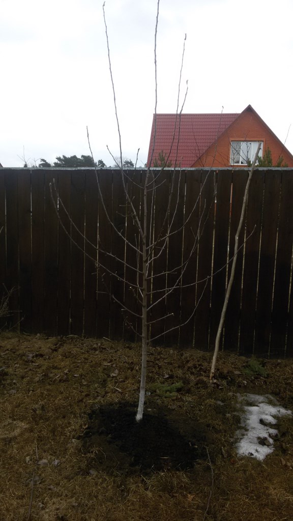 ведь на этой молодой яблоне еще нет отплодосивших веток