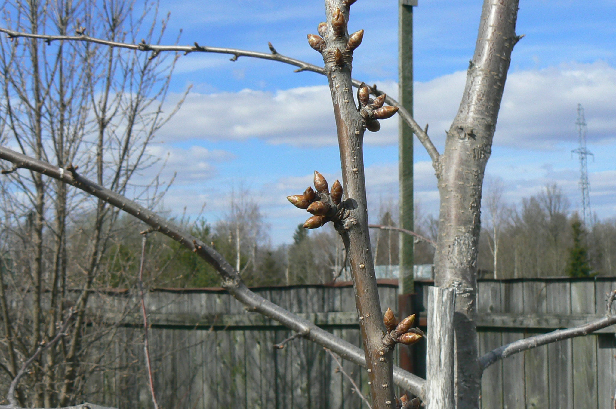 Черешня. Черёмуха. А у бересклетов, оказывается, листья то от ночных "минусов" не почернели(надо было мне, когда почки рассматривала, очки одевать). Обошлось.
