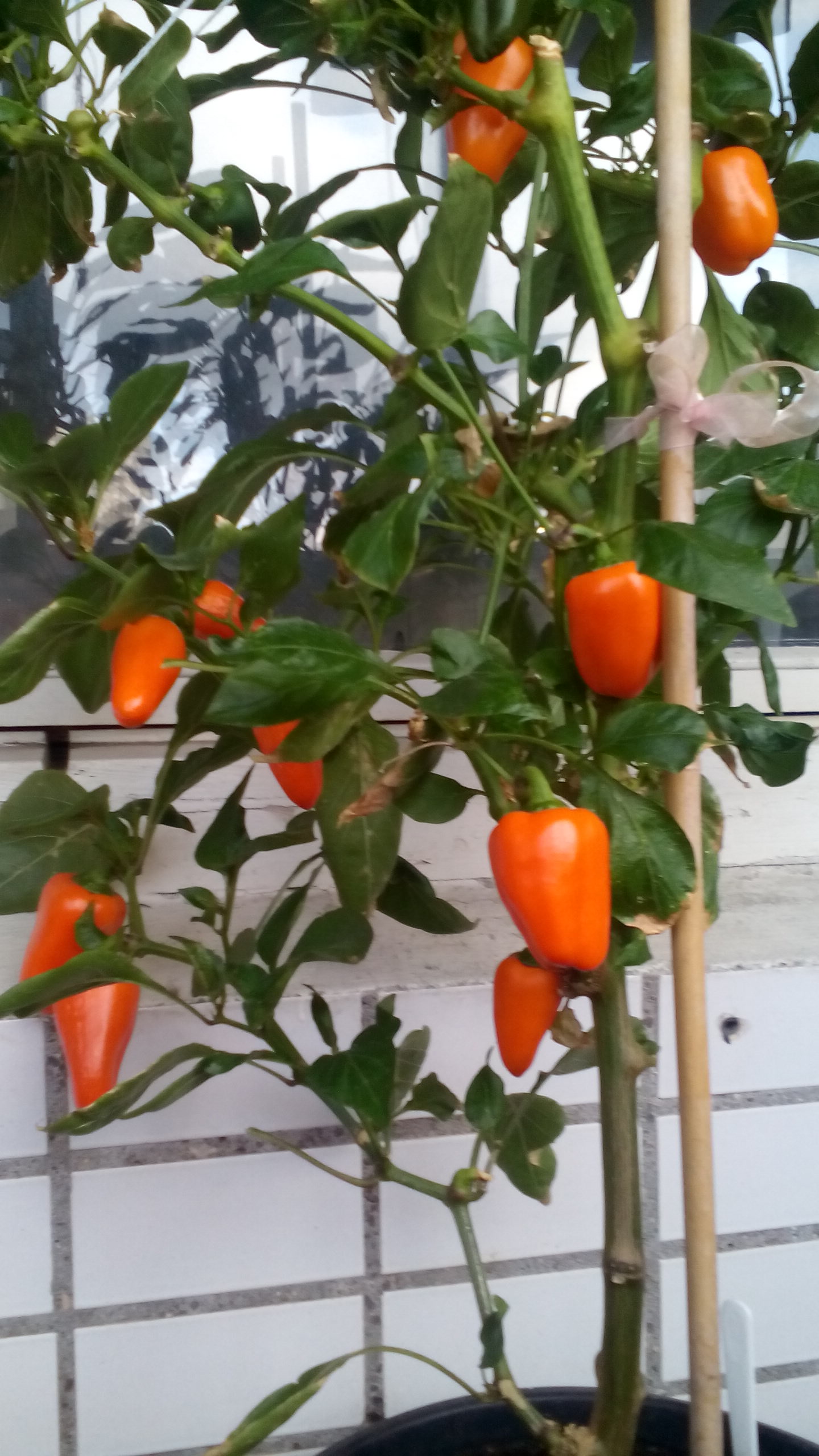 Перец Эден. Посажен весной 2014 (не ошибка) .В прошлом году рос на балконе в 7-л горшке,в зиму занесла его в кухню,на окно.