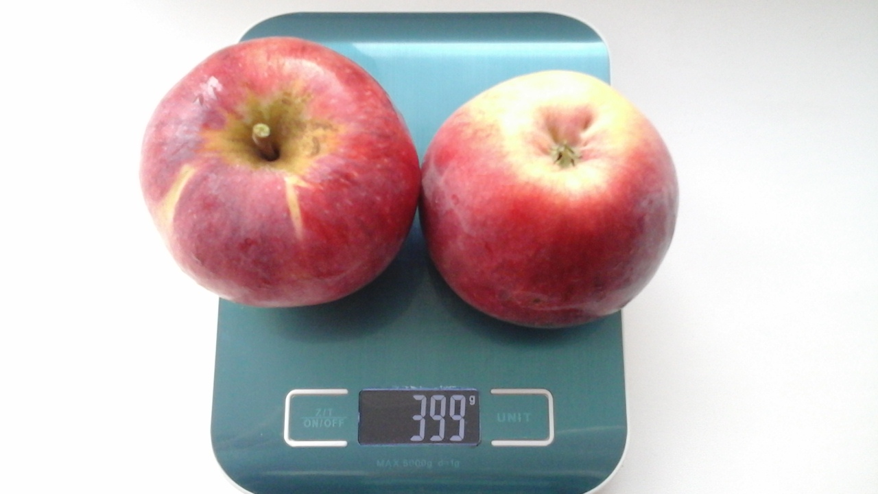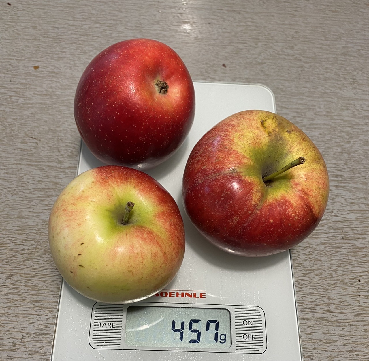 Ренет Бурхардта (первое плодоношение, 3 яблока, сняли с дерева 15 сентября). По-моему, красивое яблоко, вес примерно 250 граммом. Внешний вид несколько портит выраженная оржавленность. Вероятно, яблоко 15 сентября достигло своих оптимальных кондиций. Мякоть плотная, вполне себе сочная (но не сравнится по этому показателю с Рождественским). По вкусу наши с женой мнения разошлись. Мне вкус показался приятным и сбалансированным: нет раздражающей кислоты, но совсем не пресное и в меру сладкое. Сравнивали с Вильямс Прайд - ВП, конечно, более сладкое. Жена неожиданно сказала: "Никакое по вкусу". Пожалуй, действительно, нет каких-то отличительных ноток во вкусе, но оценку 4.3-4.4 я бы поставил тем яблокам Ренета Бурхардта, которые мы попробовали в этом году.