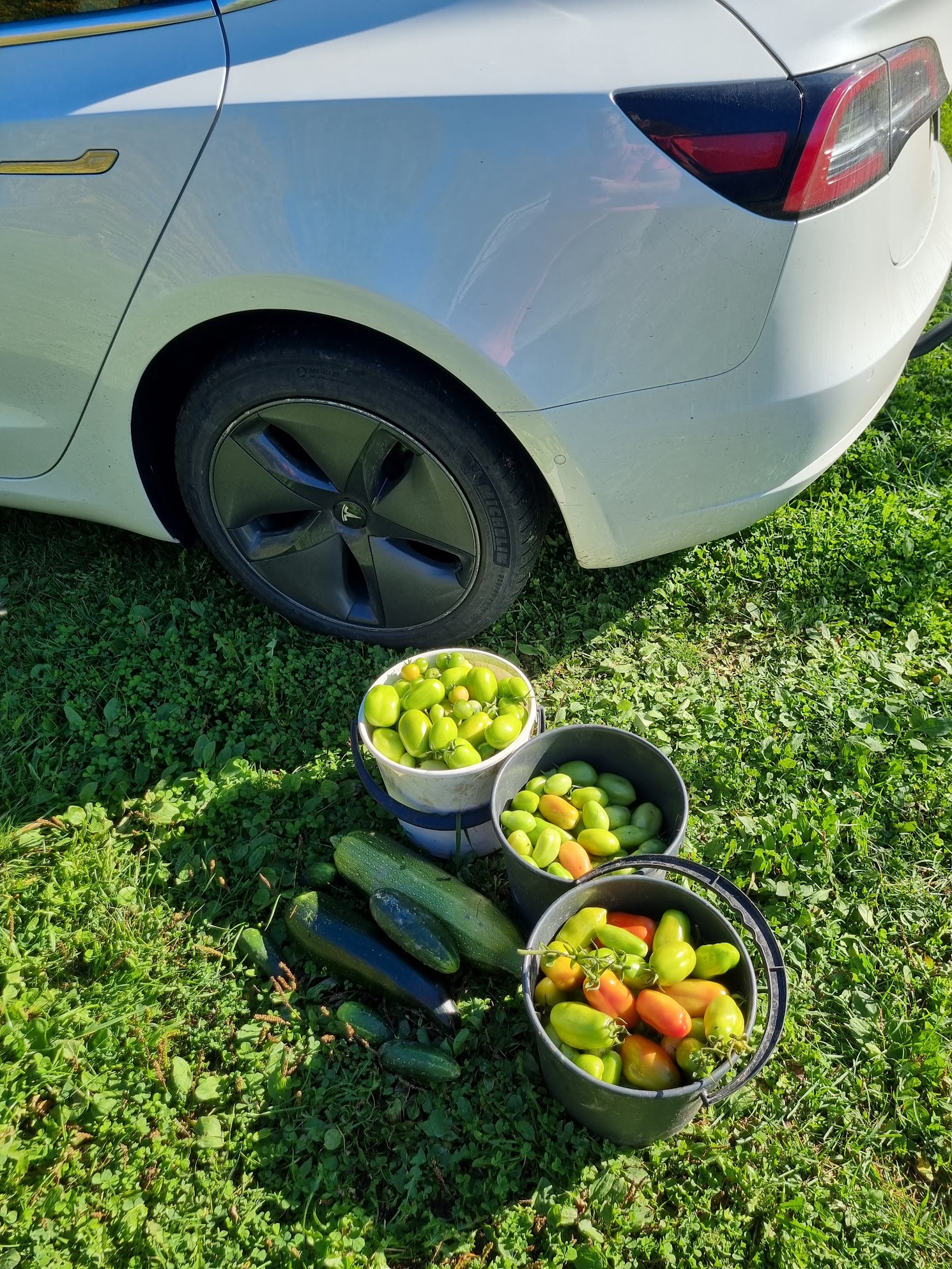 Сегодня собрал почти все. Дальше - холода. Все росли в открытом грунте. Ухаживать за ними было некогда, росли как сорняки. Постоянное плодоношение с июля. Часть посадил на шпалеру между яблонями, пока они маленькие и не заняли все место, удобно подвязывать и есть капельный полив.