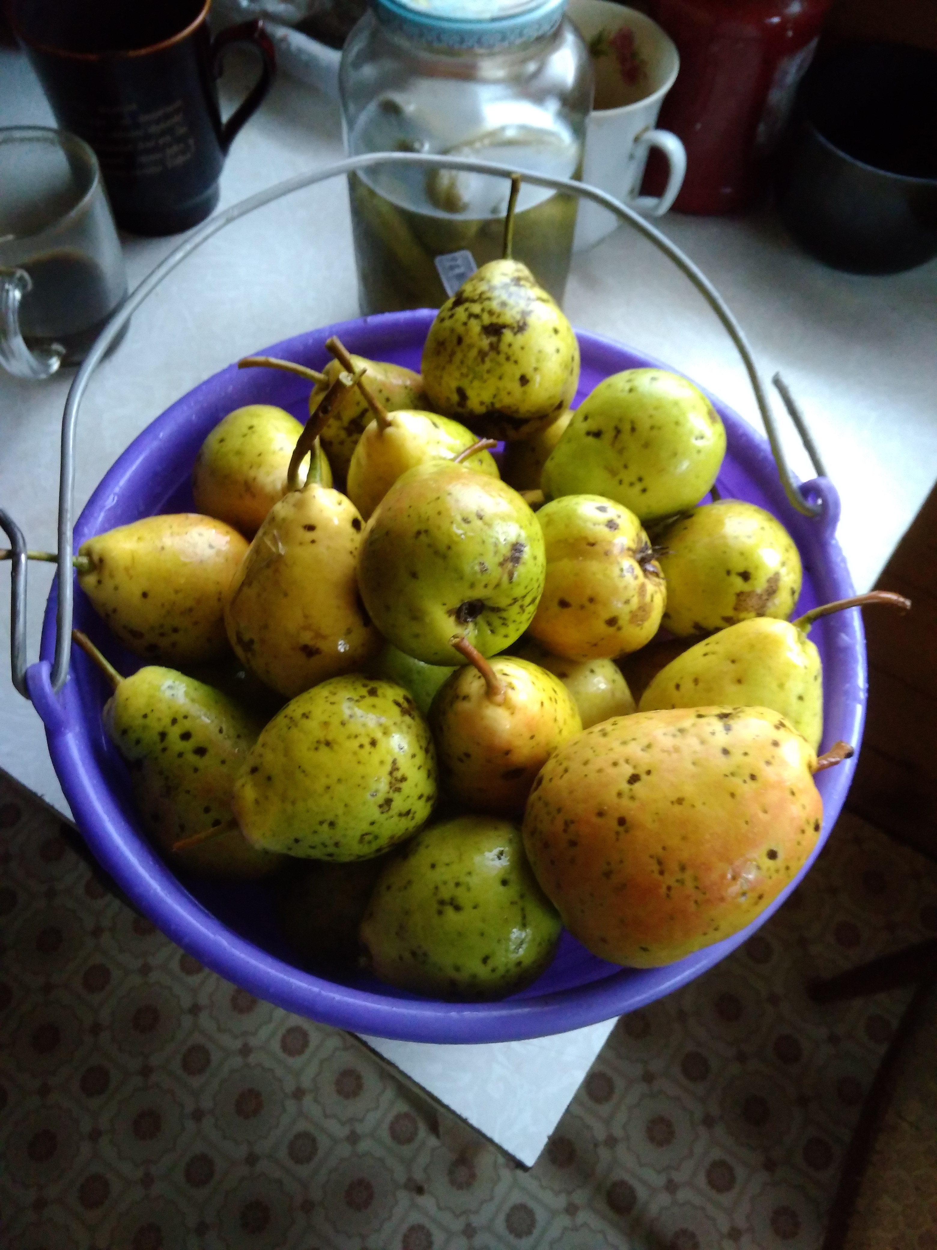Напросилась на дегустацию груши Видная у малознакомых соседей, вкус, вид и размер очень понравились, в отличии от моей Лады, которую еще и побила парша в это холодное и мокрое лето. Мои остальные летние груши еще молоденькие и толком еще не плодоносили
